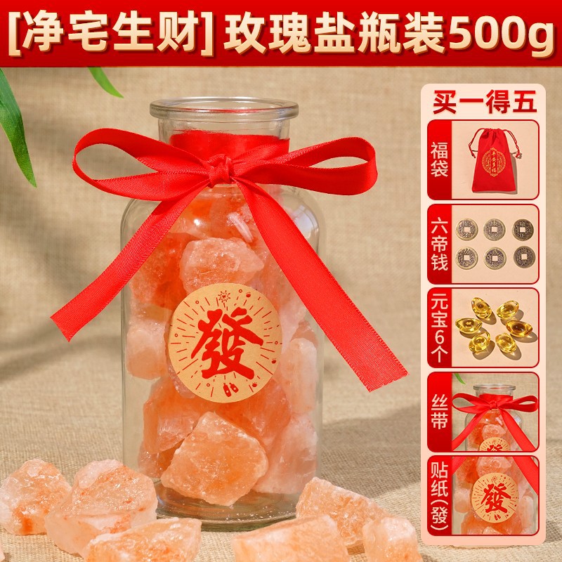 • 2.5kg [깨끗한 집과 부의 소금] - 큰 입자 - 복주머니 + 육제금 + 주괴 + 포장접시 5개