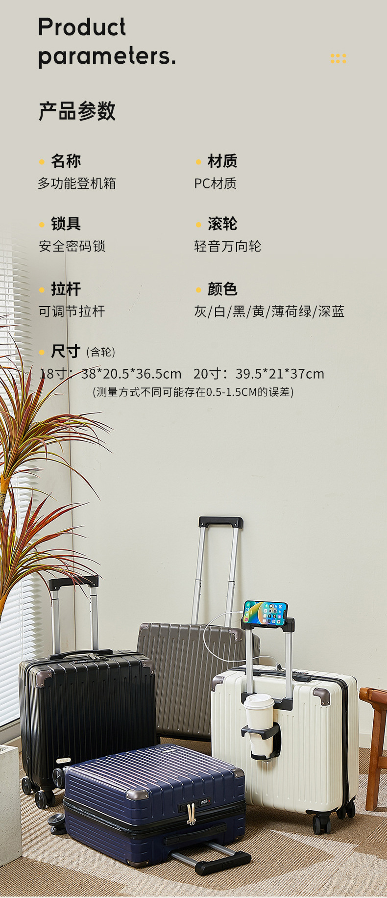 18inch 탑승 수하물 새로운 트롤리 케이스 자동 여행 가방 암호 상자 경량 소형 내구성 적합스토어 가기