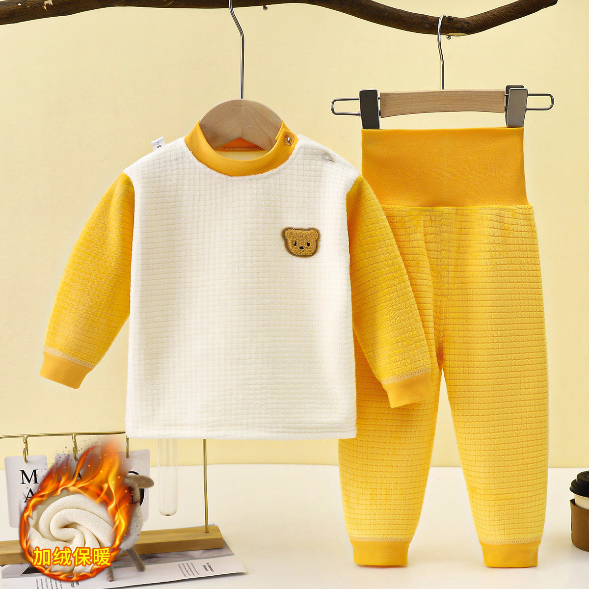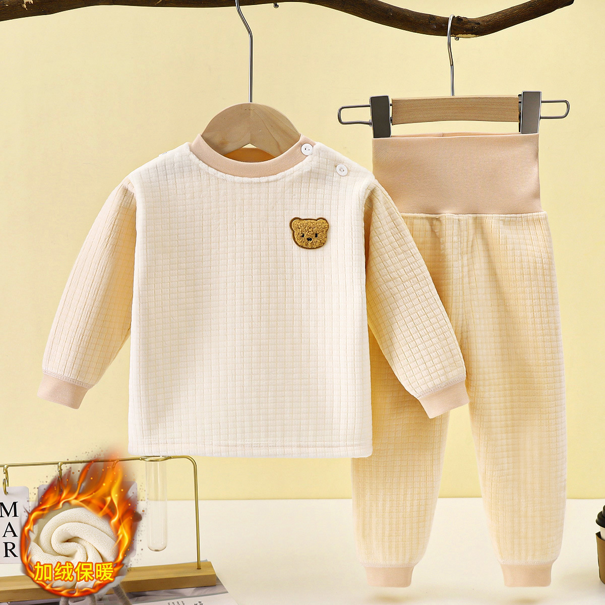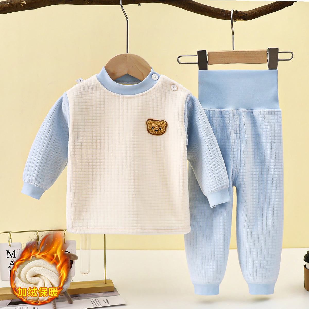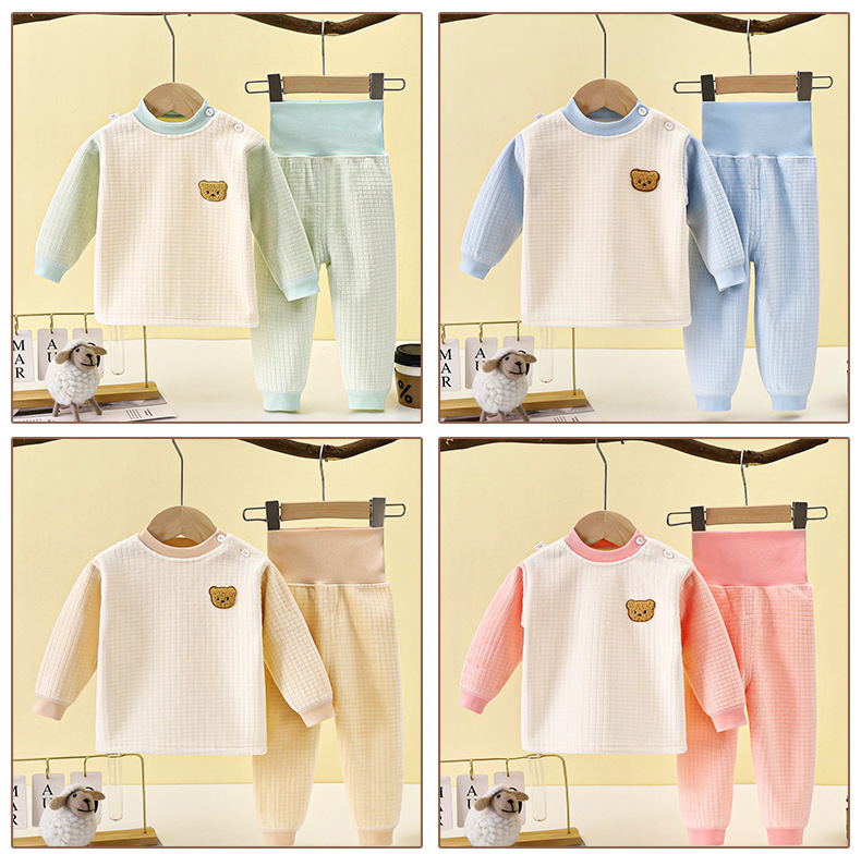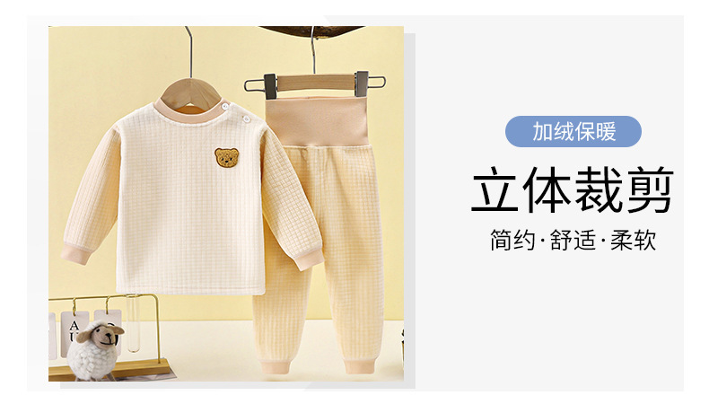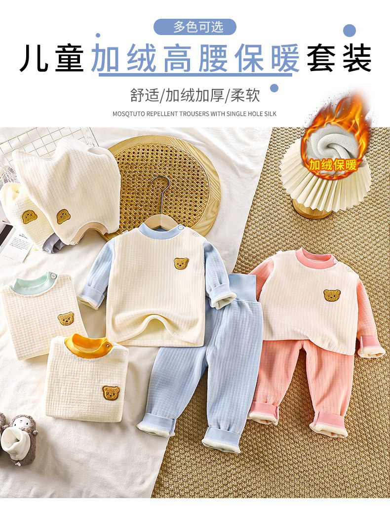 남성과 여성을 위한 아동용 보온 속옷 세트, 유아용 두꺼운 벨벳 하이웨이스트 배꼽 보호 바지, 아기 가을 겨울 가정복스토어 가기