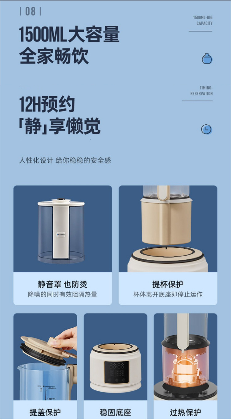독일 Blaupunkt 라이트 사운드 벽 파괴 기계 가정용 가열 완전 자동 소형 두유 기계 비 자동 다기능 요리 기계스토어 가기