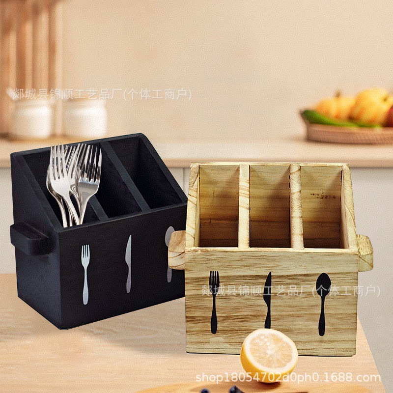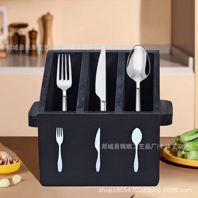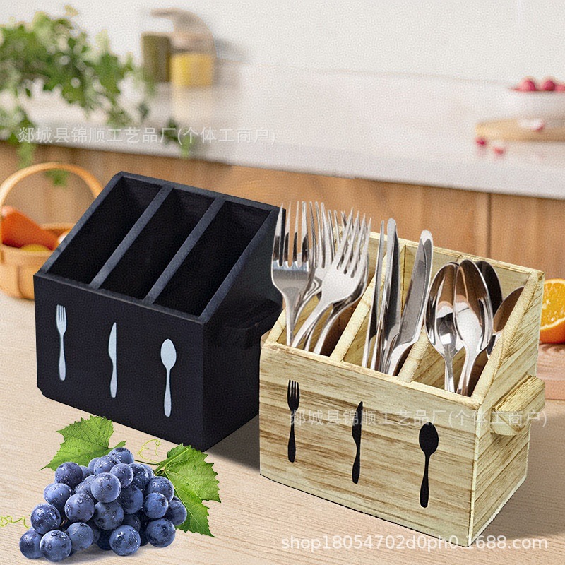 나무 식기 랙 Paulownia 탄화 주방 조리대 식기 상자 단단한 나무 칼과 포크 보관 상자 정리 상자스토어 가기