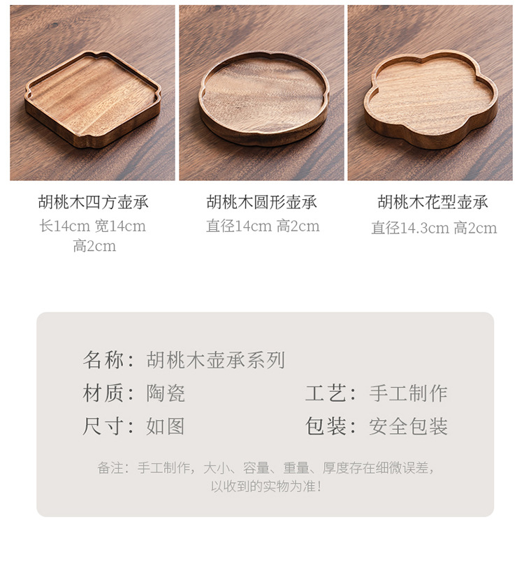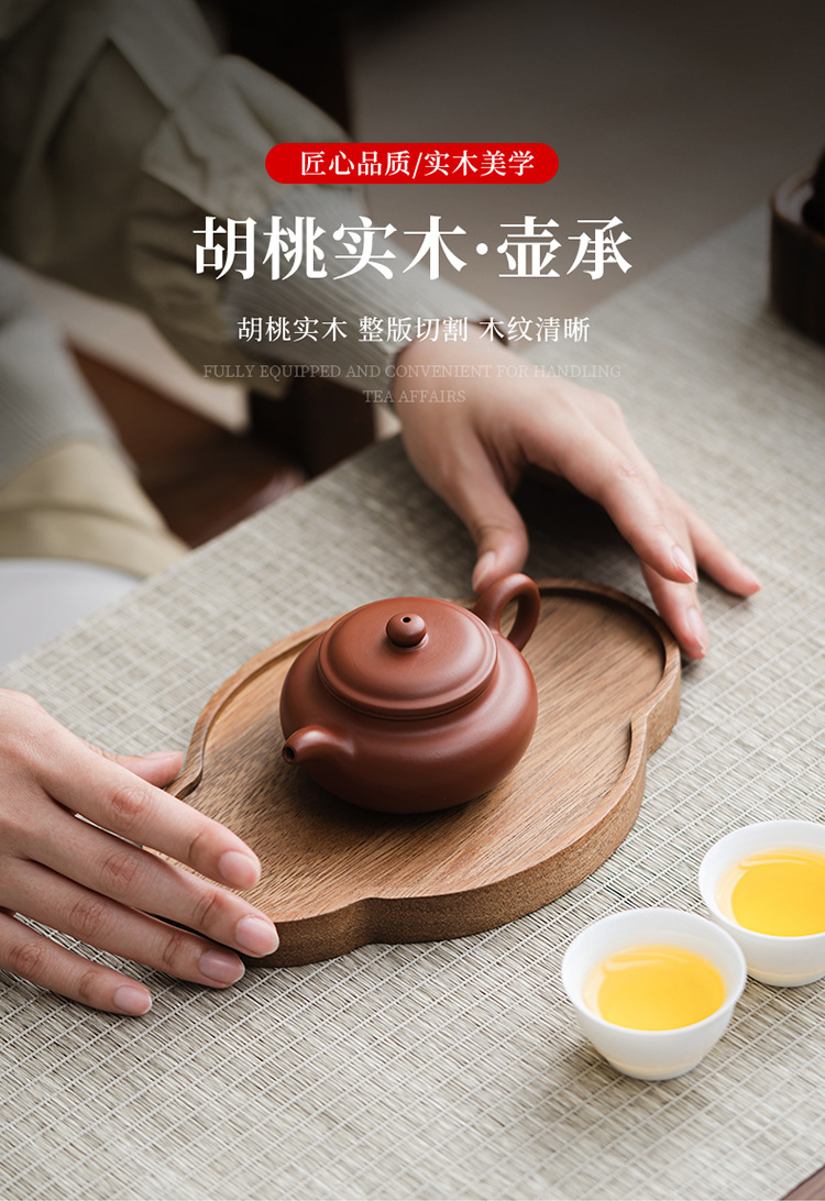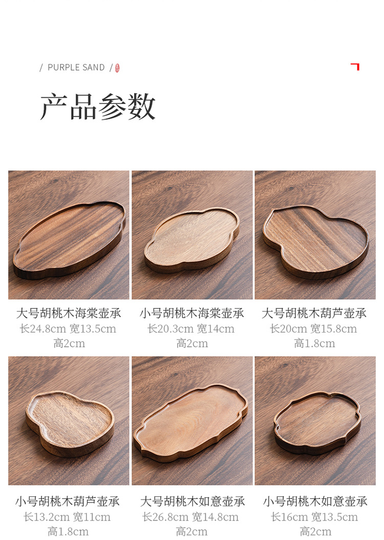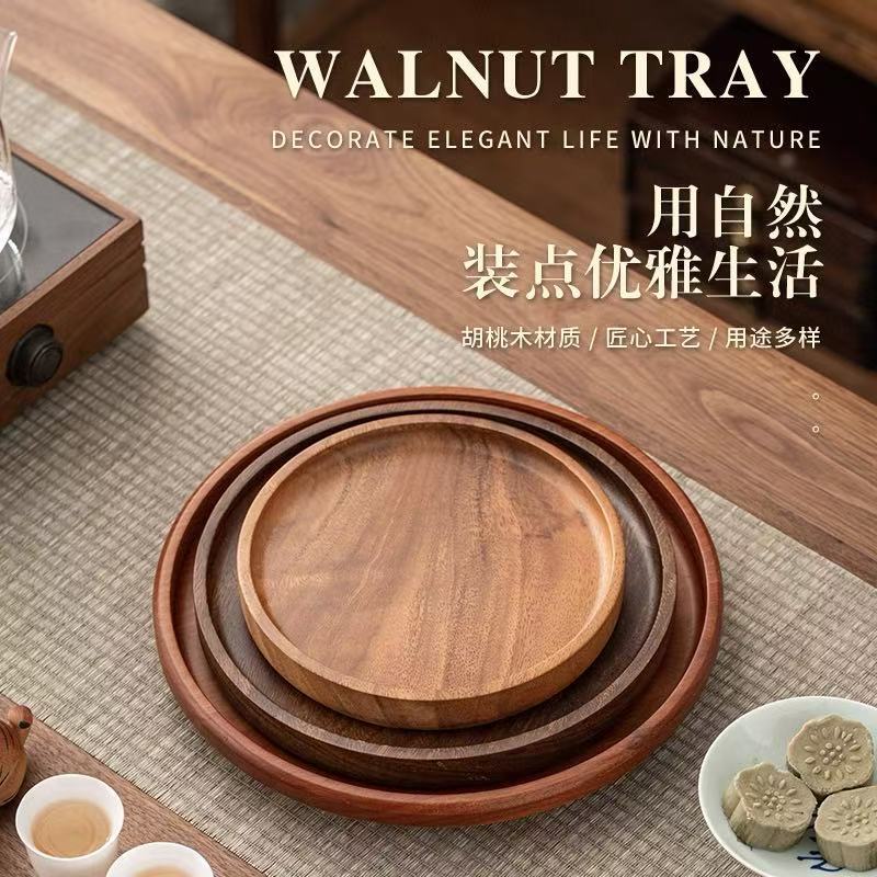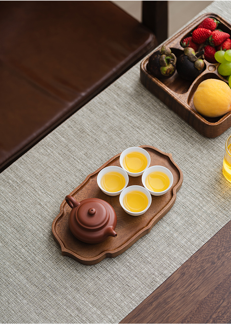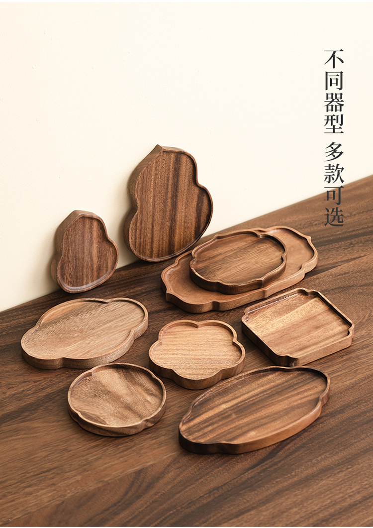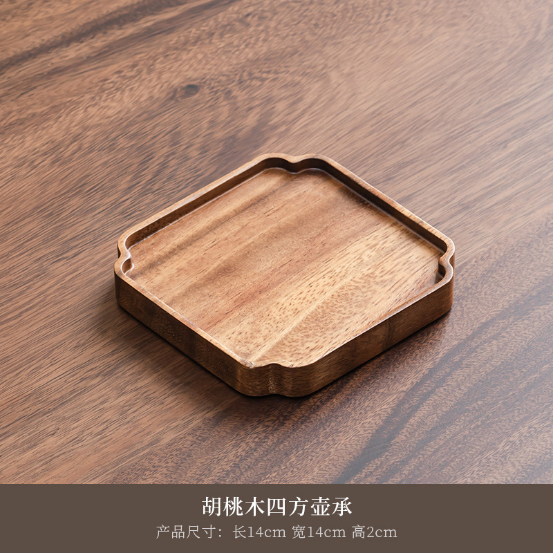 호두나무 원목 트레이 건식 차 트레이 야외용 중국식 차 트레이 소형 차 테이블 주전자 받침대 차 매트 간식 트레이