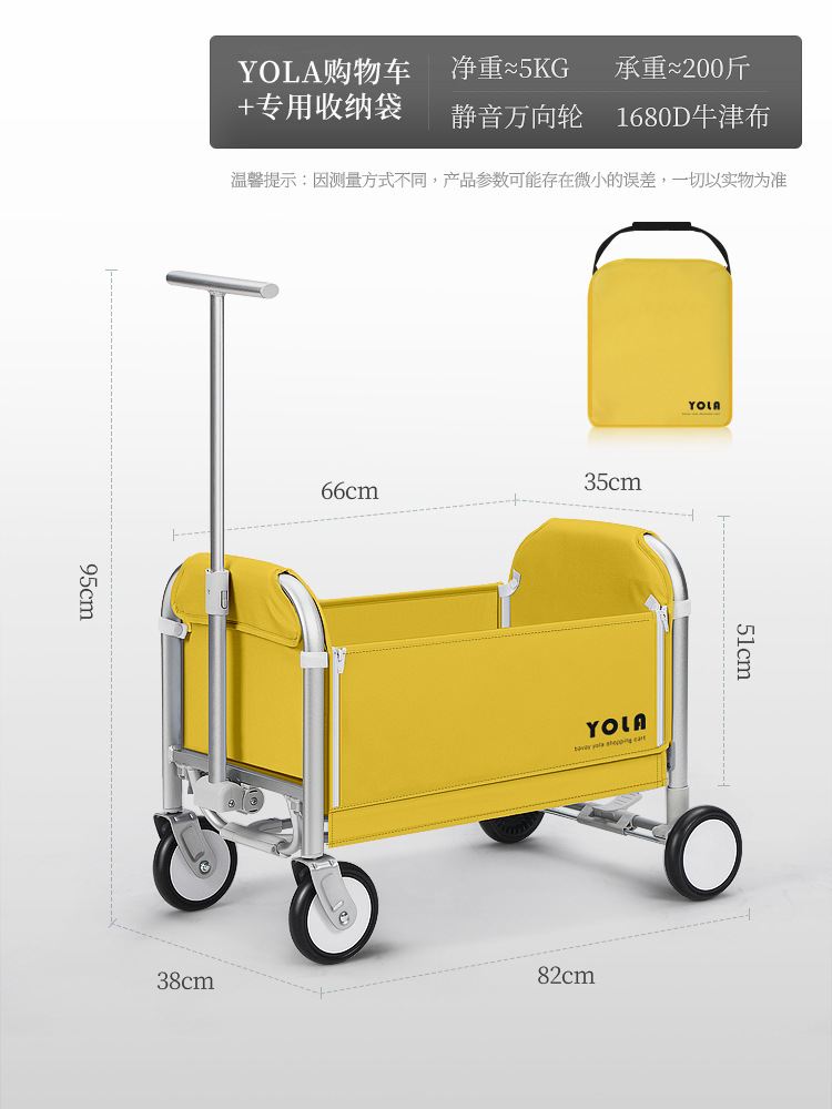 • [프림로즈 옐로우 + 수납가방] YOLA 유니버셜 사일런트 휠 + 1680D 패브릭 + 경량 알루미늄 프레임