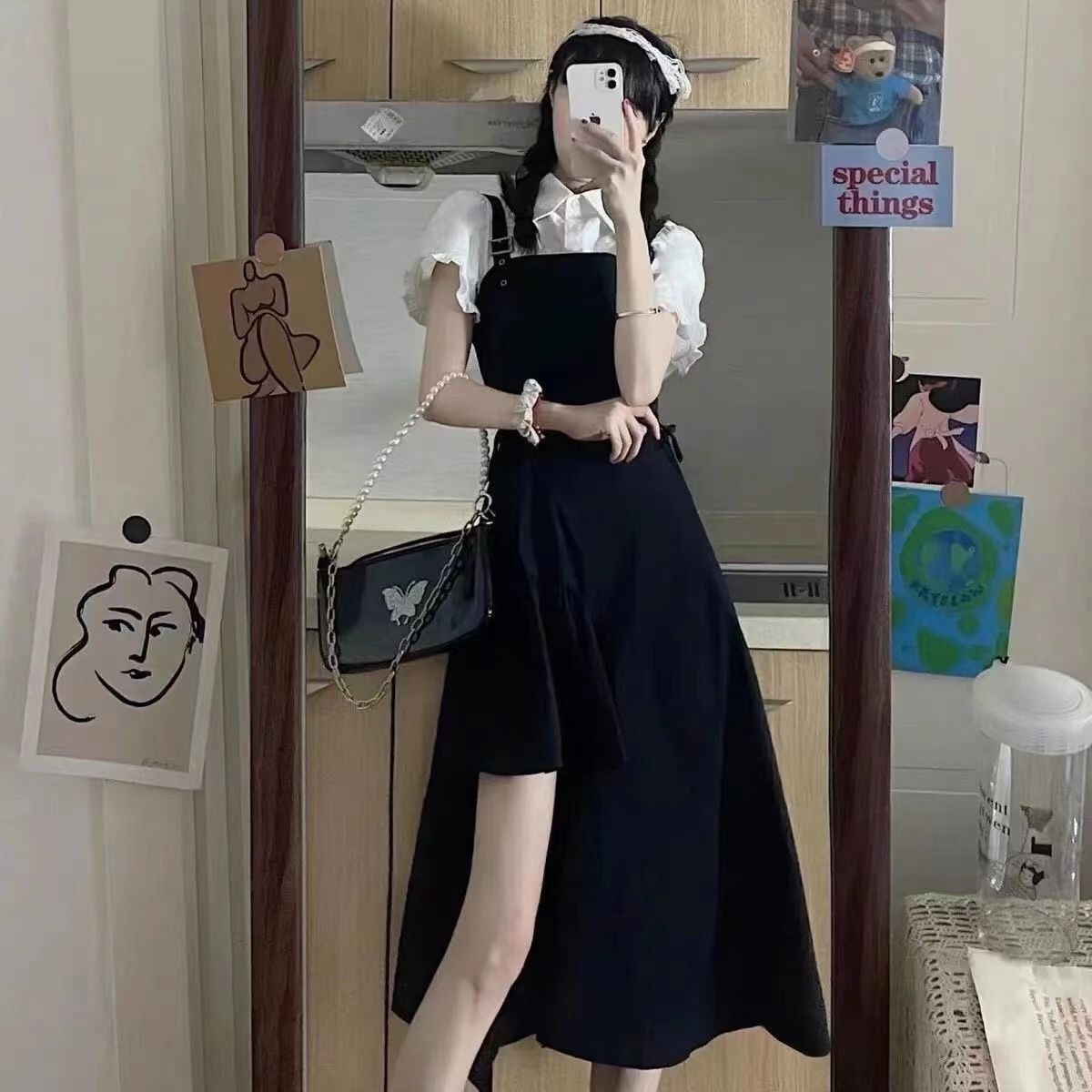 여성을 위한 여름 젠틀룩 2025 신상 한국 스타일 슬림 러플 셔츠 불규칙 서스펜더 스커트 투피스 세트스토어 가기