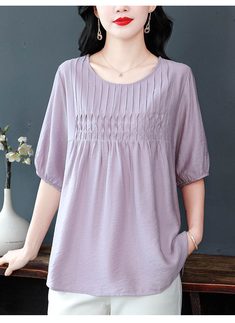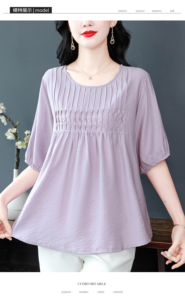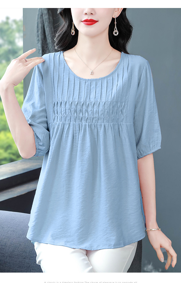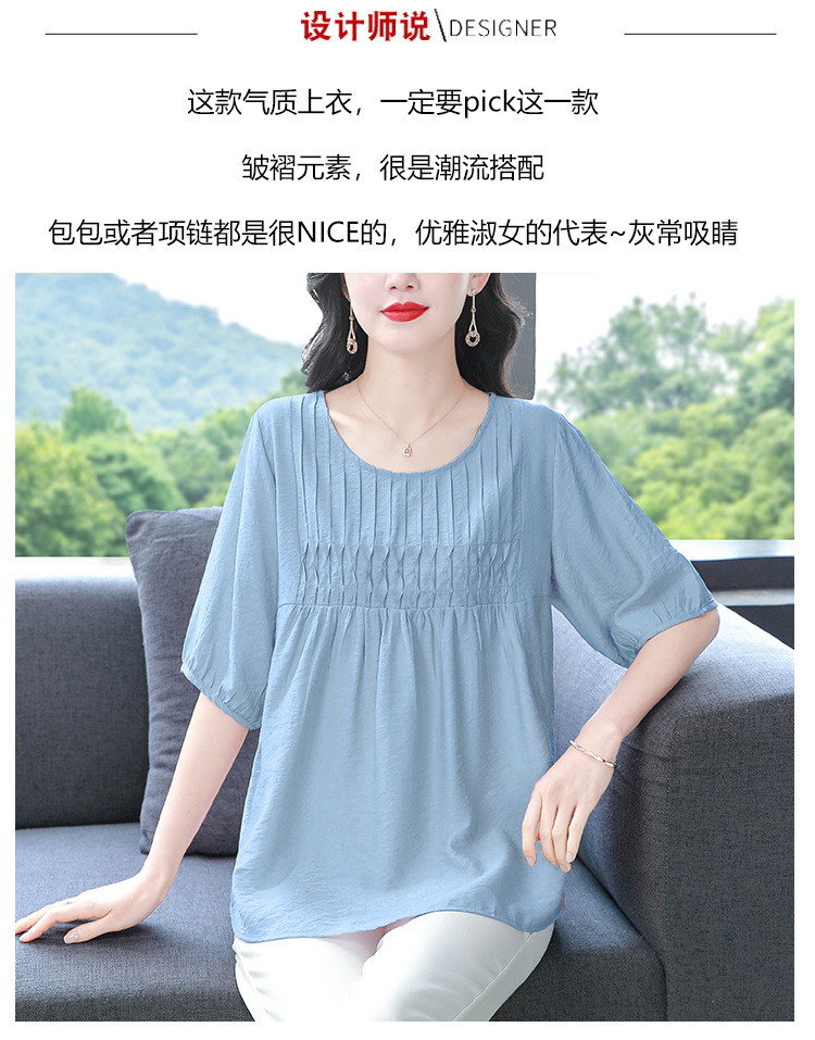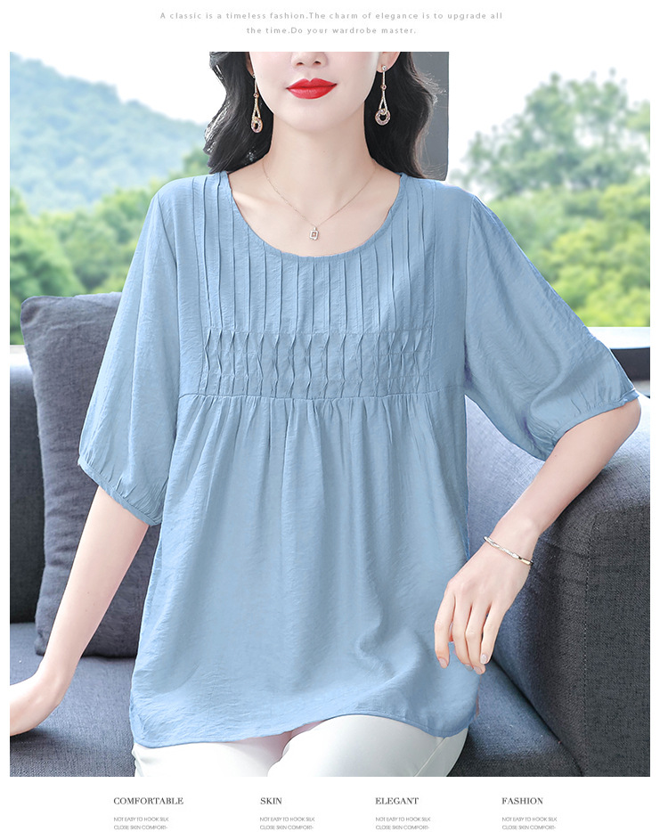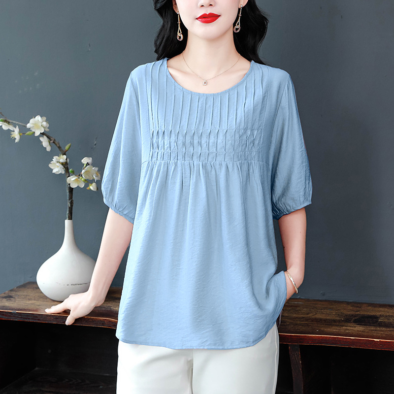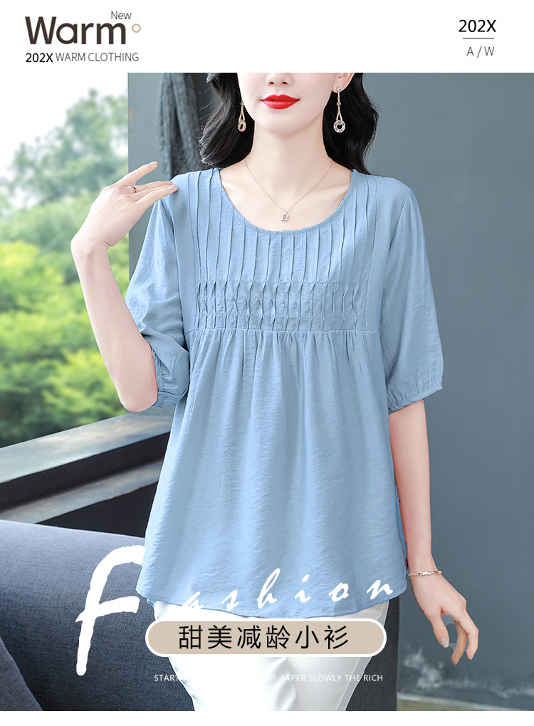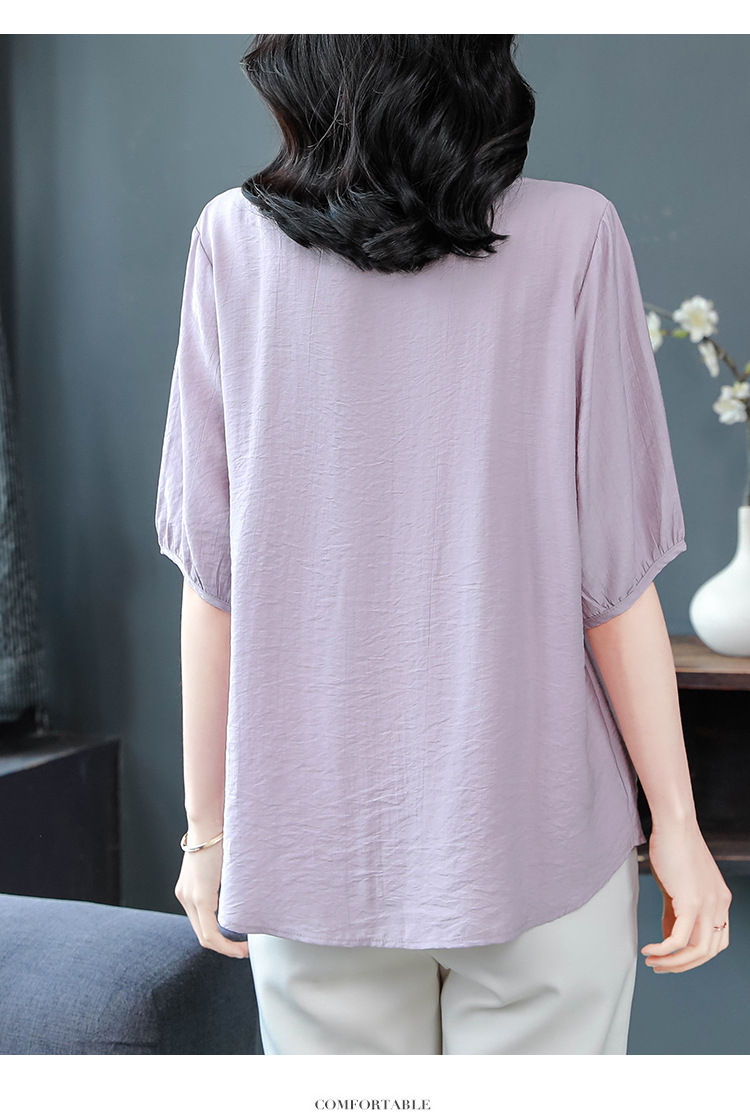 여성을위한 하이 엔드 모시 느슨한 반팔 셔츠 2025 여름 새로운 캐주얼 인형 셔츠 엄마 스타일 코튼과 린넨 탑
