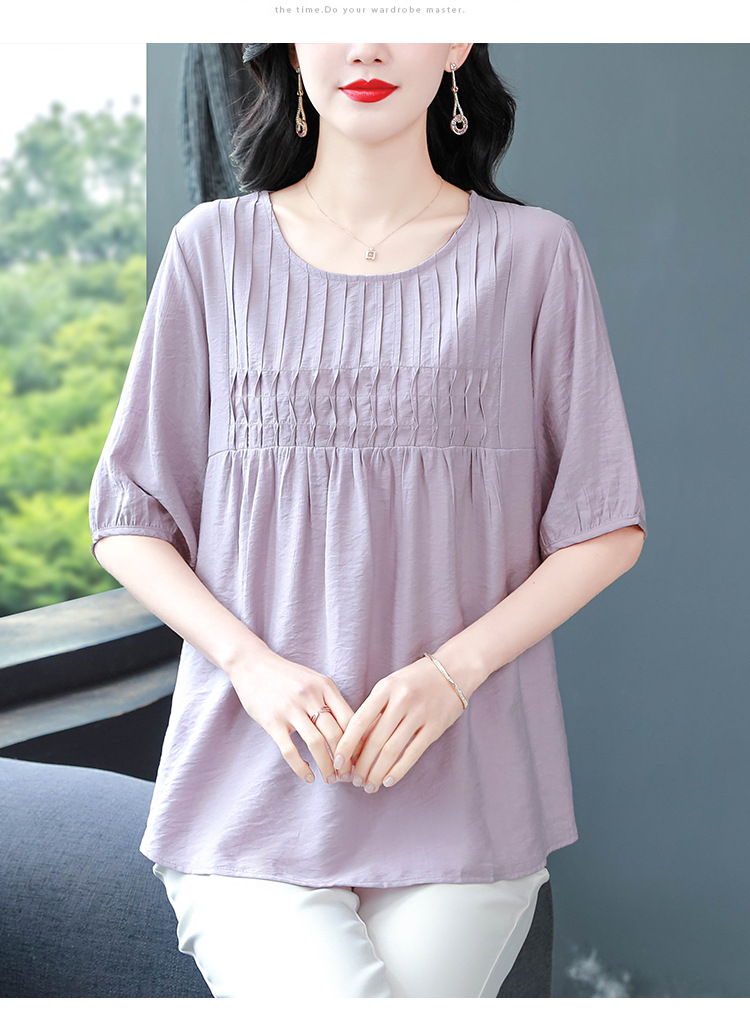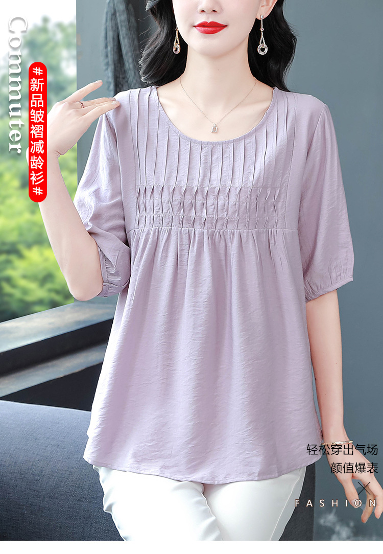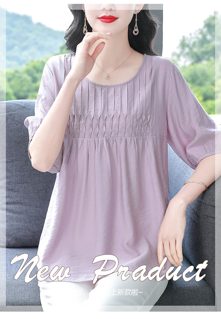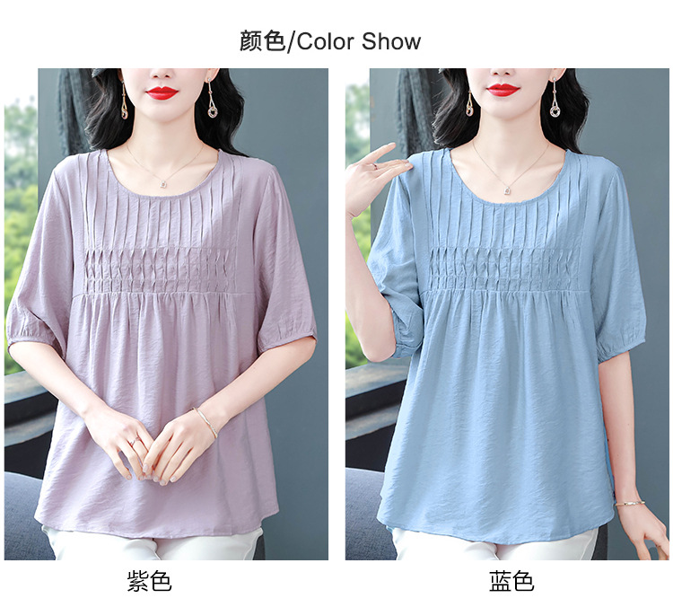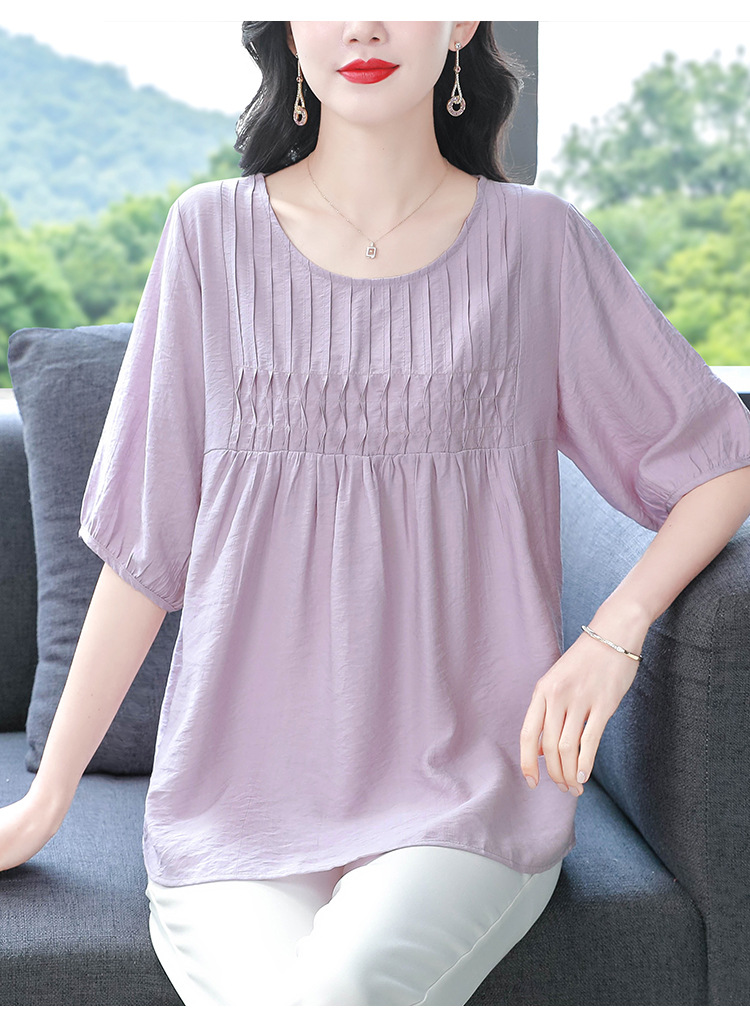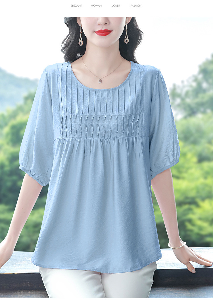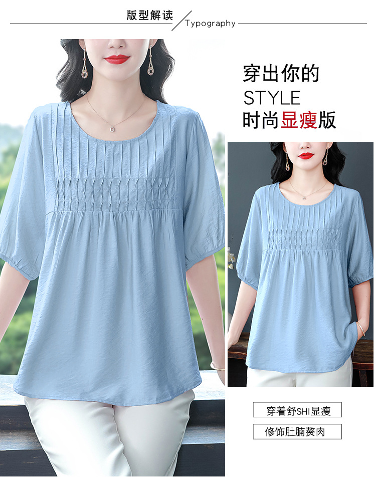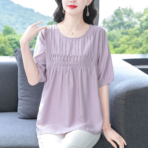 여성을위한 하이 엔드 모시 느슨한 반팔 셔츠 2025 여름 새로운 캐주얼 인형 셔츠 엄마 스타일 코튼과 린넨 탑