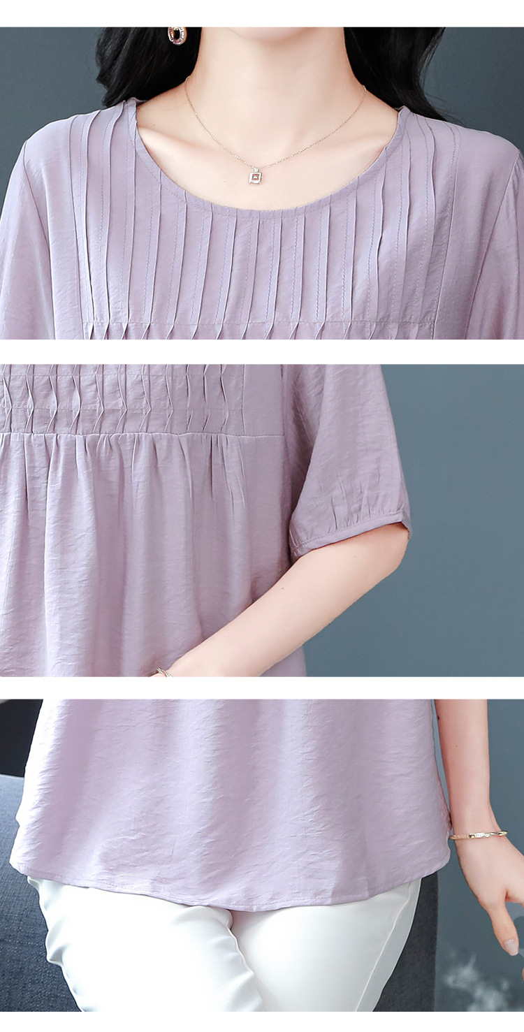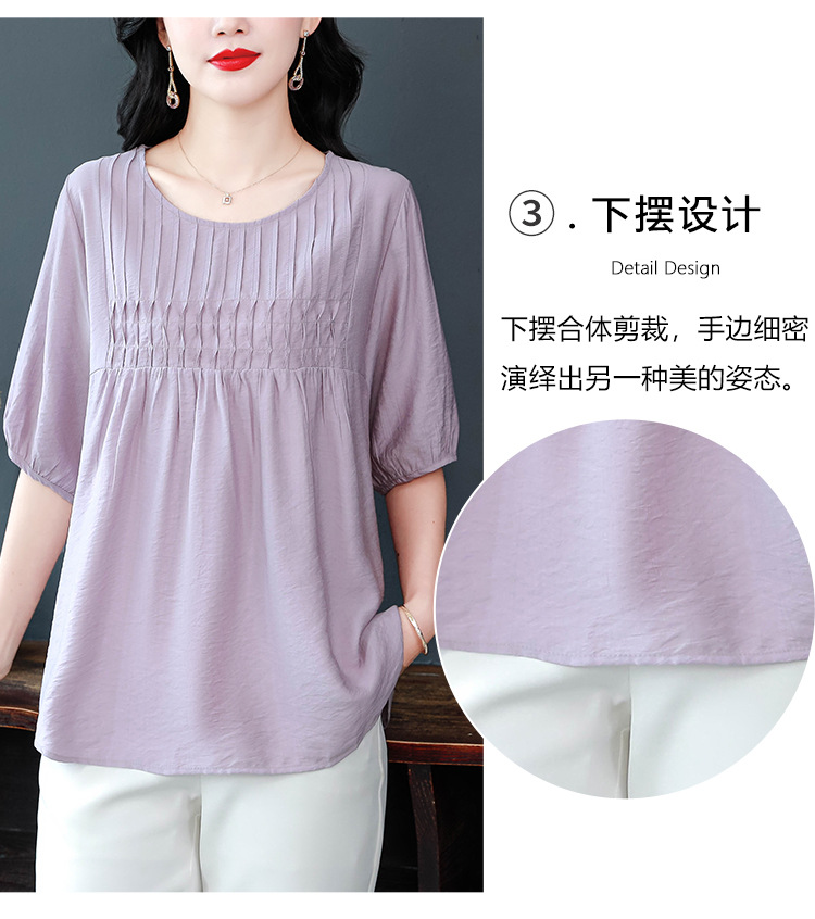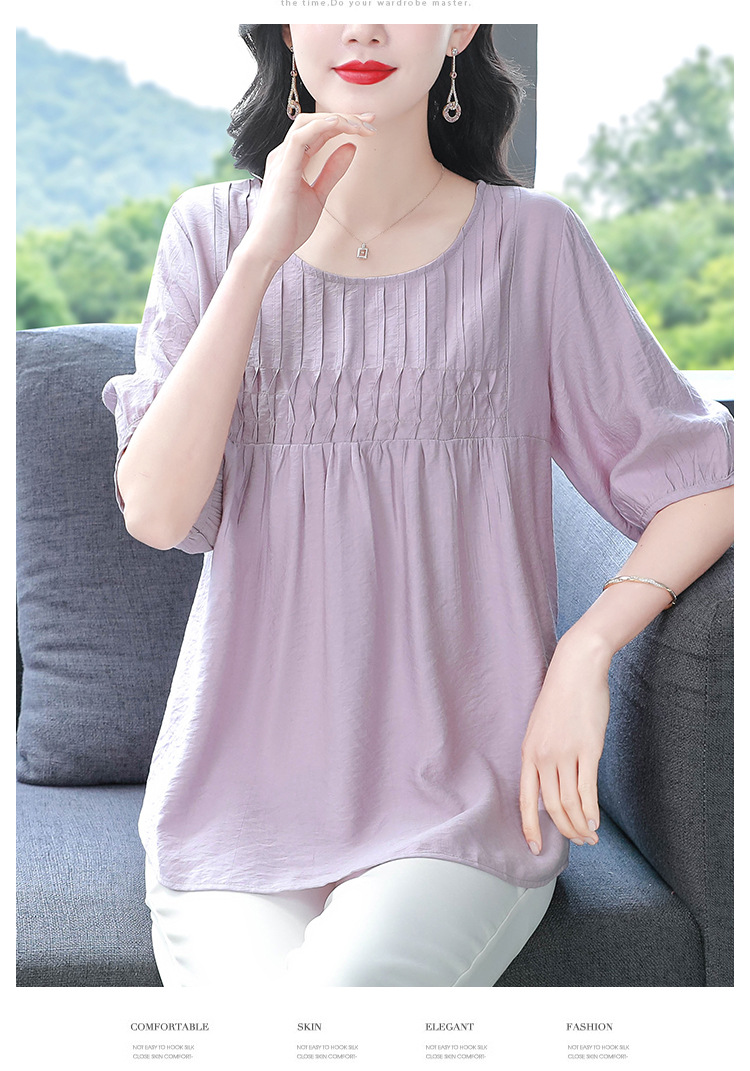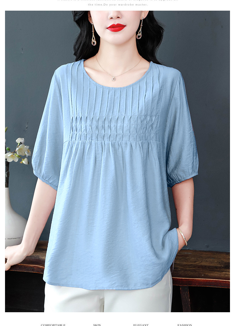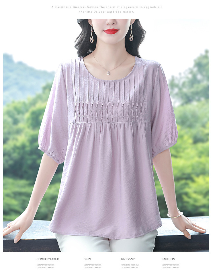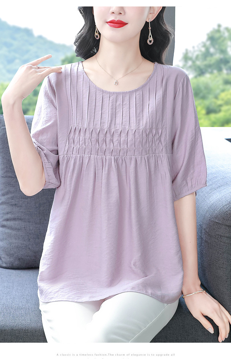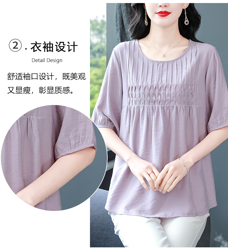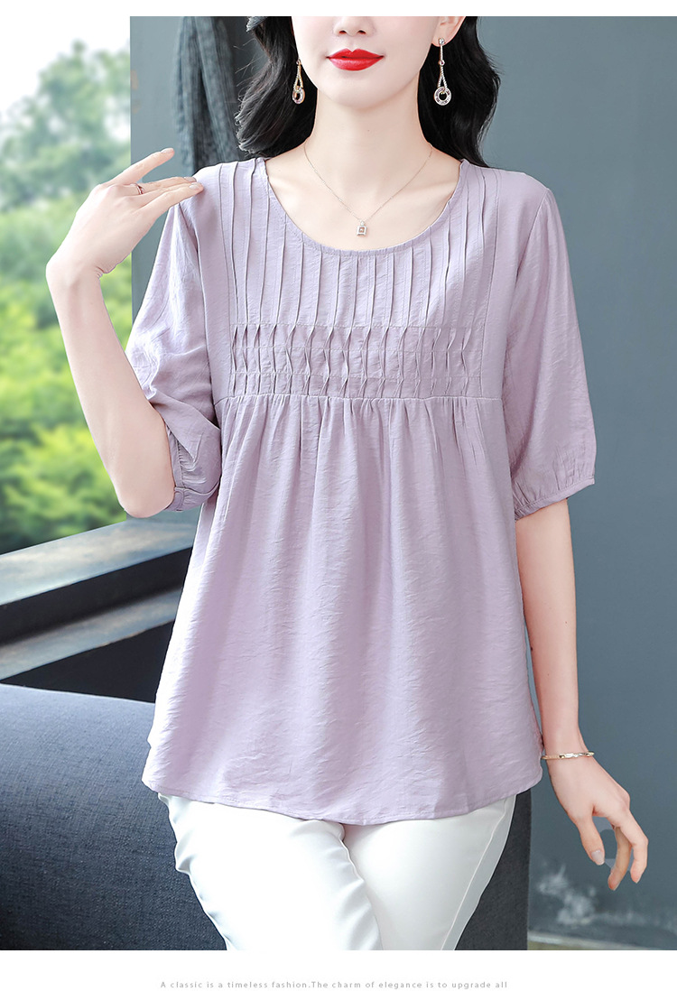 여성을위한 하이 엔드 모시 느슨한 반팔 셔츠 2025 여름 새로운 캐주얼 인형 셔츠 엄마 스타일 코튼과 린넨 탑