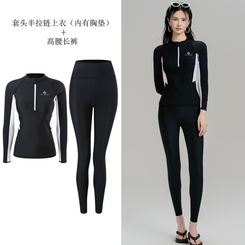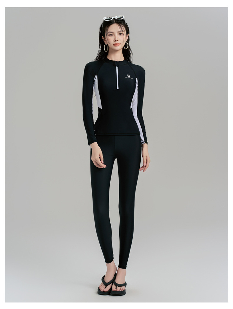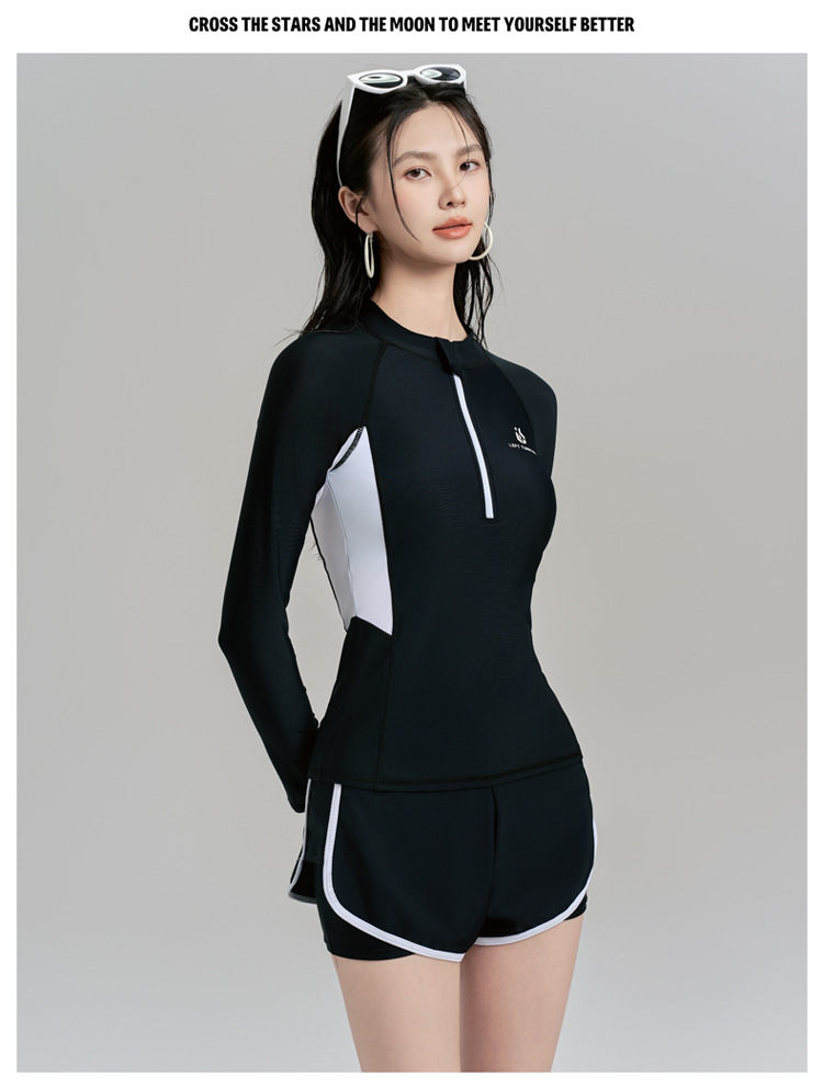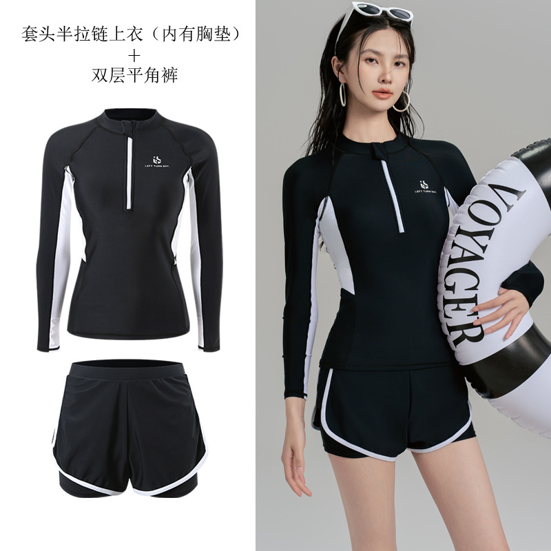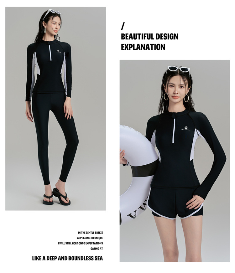 여성용 잠수복, 분할 지퍼, 가슴 패드가 있는 긴 소매, 자외선 차단 해파리 슈트, 복서 슬리밍 서핑 슈트, 스노클링 슈트, 수영복