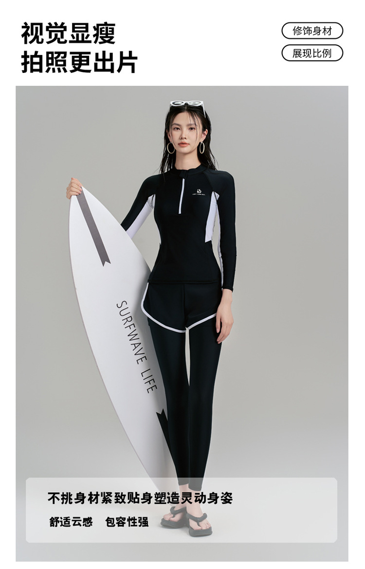 여성용 잠수복, 분할 지퍼, 가슴 패드가 있는 긴 소매, 자외선 차단 해파리 슈트, 복서 슬리밍 서핑 슈트, 스노클링 슈트, 수영복스토어 가기