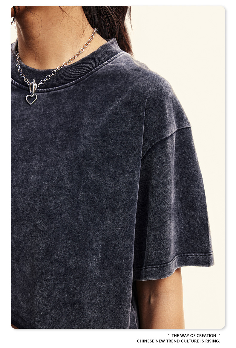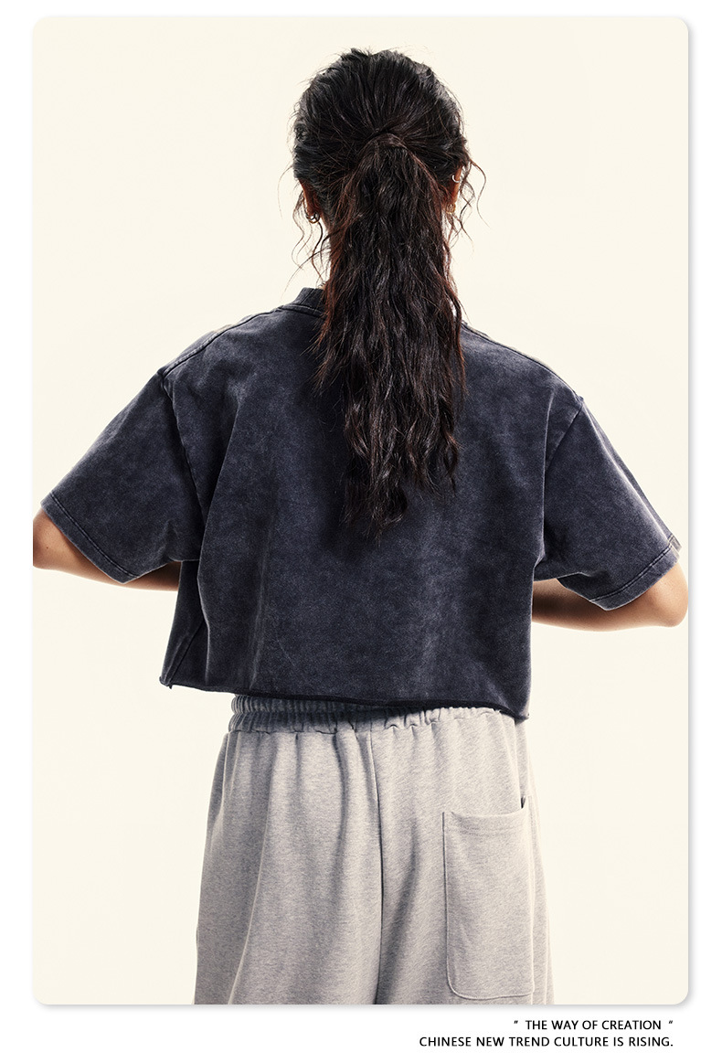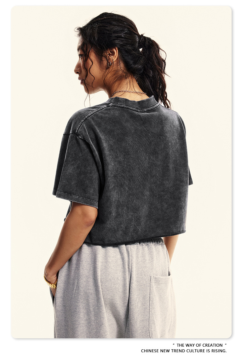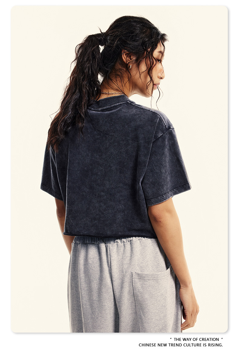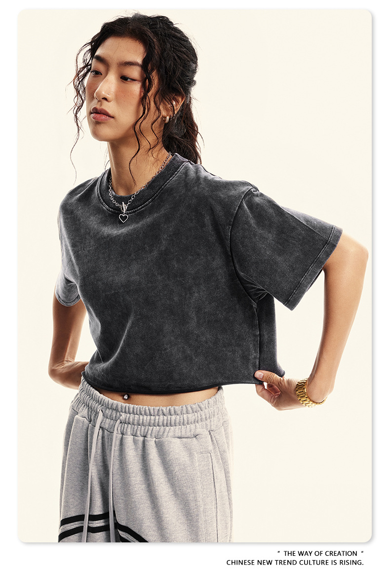 스트리트 드라이 | 유럽과 미국의 트렌디한 브랜드 핫걸 새로운 라운드 넥 올드 워시 브러시 반팔 티셔츠 여성용 짧은 배꼽 노출 여성용스토어 가기