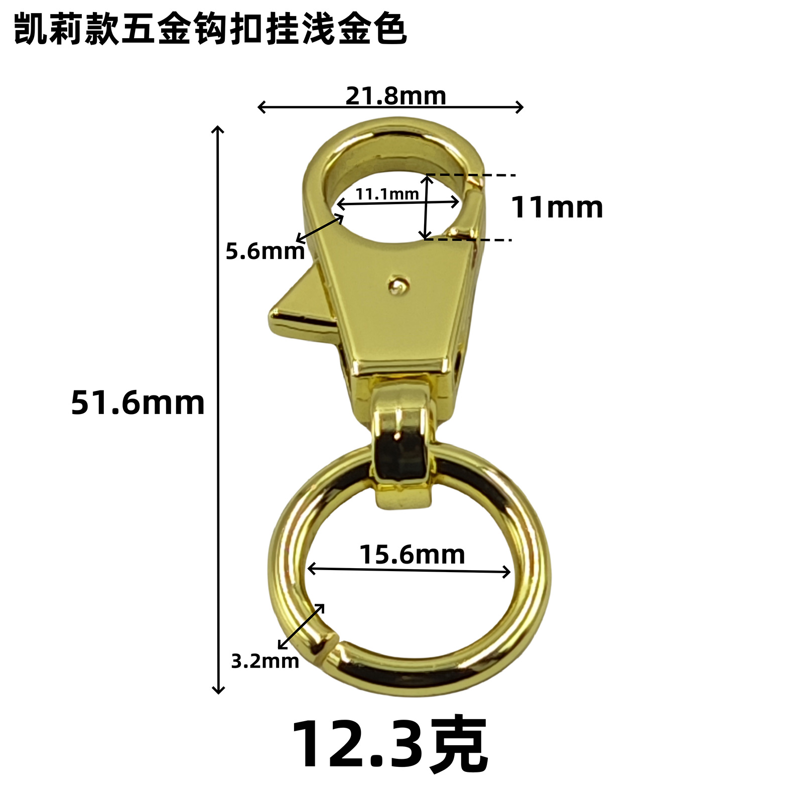 浅金色凯丽钩扣 锌合金挂镀箱包包项圈五金配件圆尾勾扣狗扣钩扣