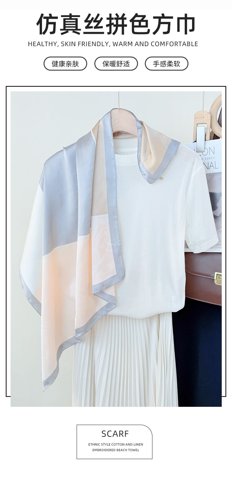 한국 현대 스타일 간단한 컬러 블록 스퀘어 스카프 봄과 여름 유행 여성 전문복 스카프 70 모조 실크