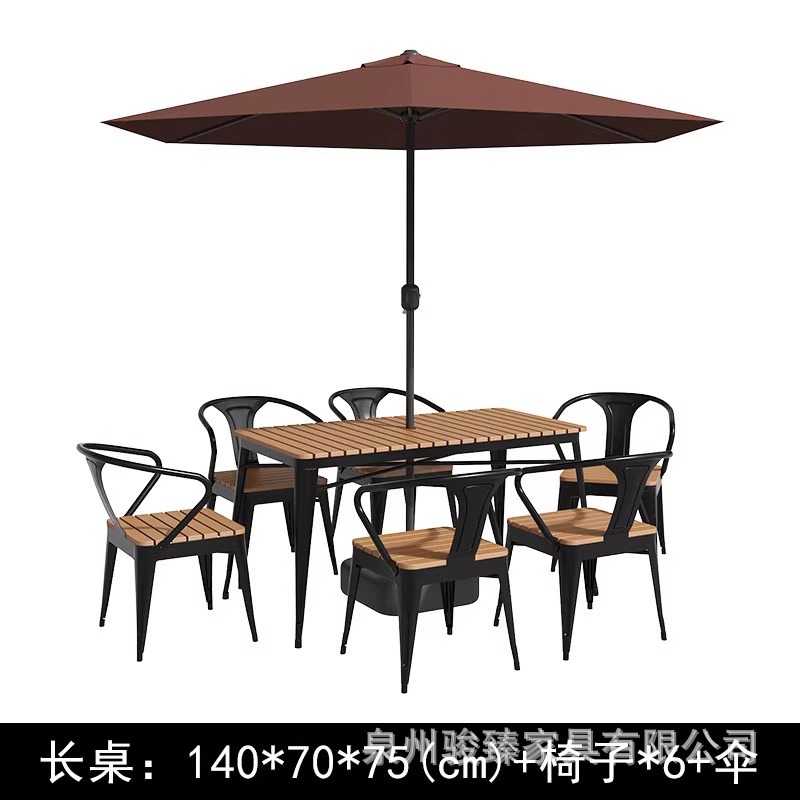 • 블랙 롱 테이블 140 콤비네이션 + 의자 6개 + 우산