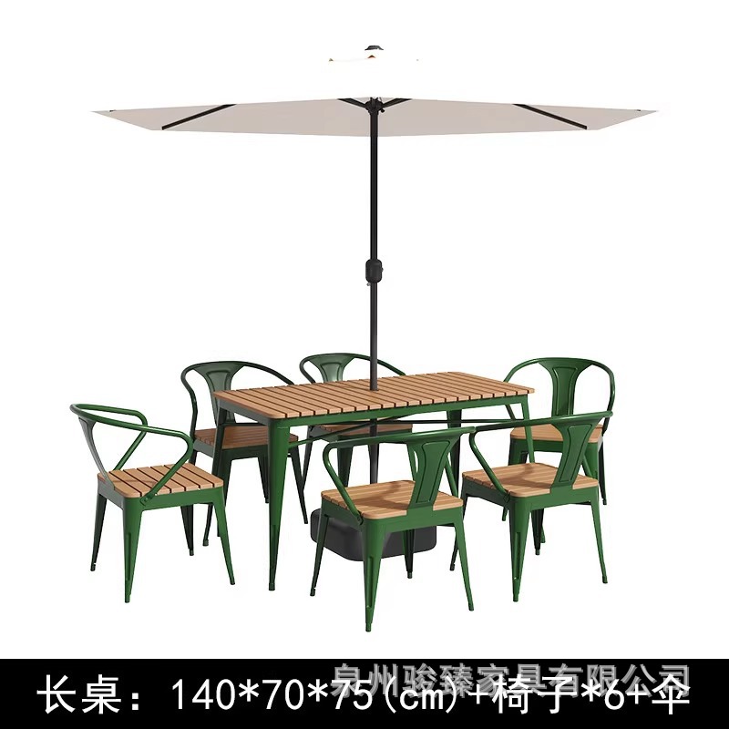 • 그린 롱 테이블 140 콤비네이션 + 의자 6개 + 우산