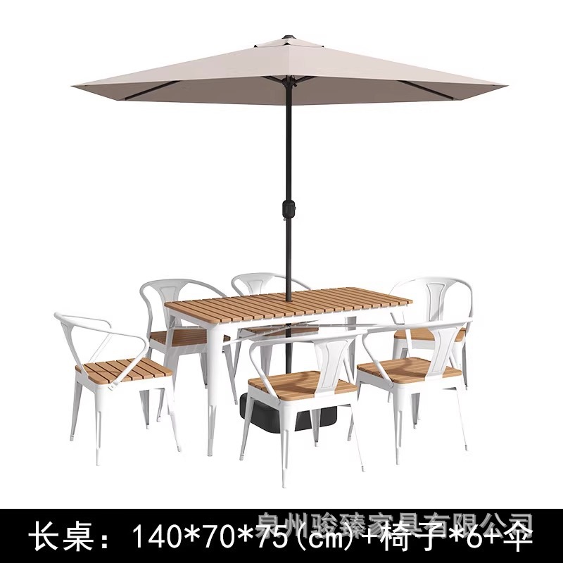 • 화이트 롱테이블 140 콤비네이션 + 의자 6개 + 우산