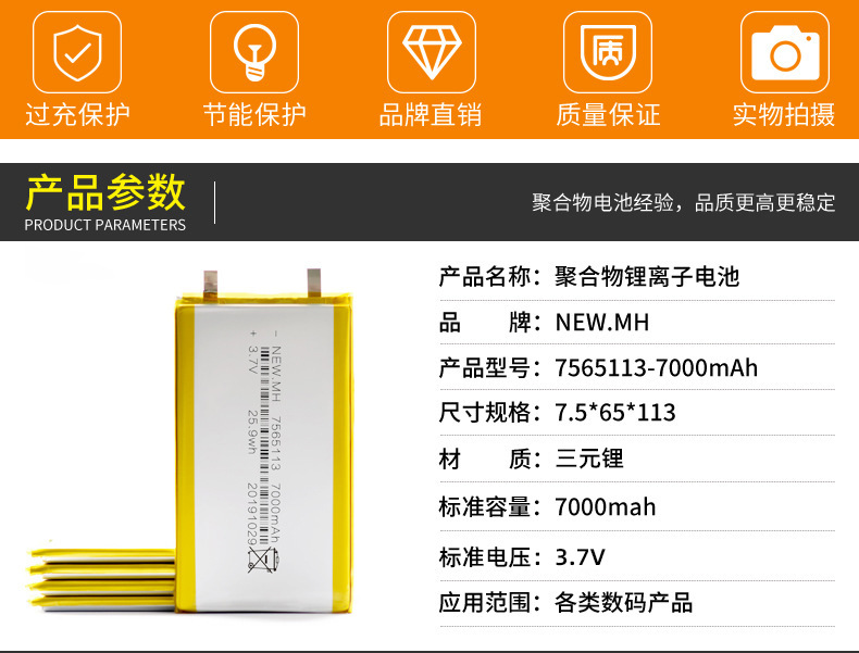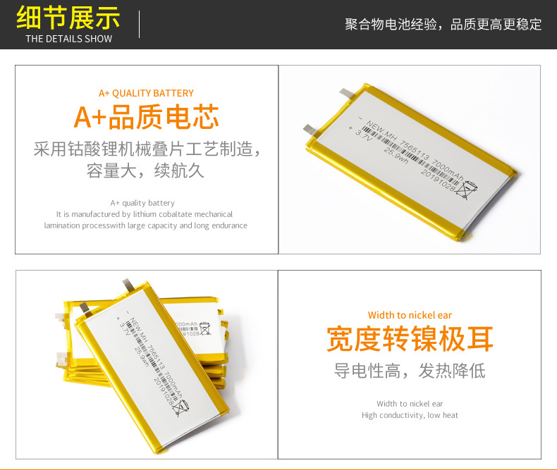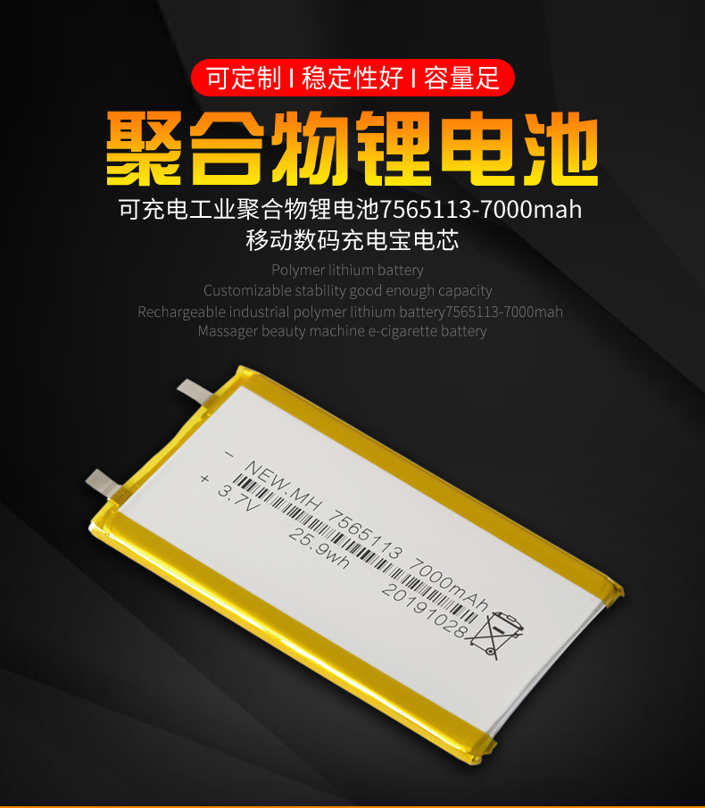 7565113 폴리머 리튬 배터리 7000mAh 대용량 전자 디지털 모바일 전원 충전 보물 배터리스토어 가기