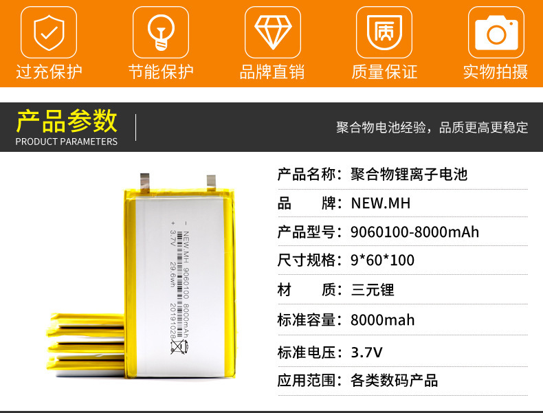 9060100 폴리머 리튬 배터리 8000mAh 충전 보물 모바일 전원 태블릿 컴퓨터 의료 장비 배터리 코어스토어 가기
