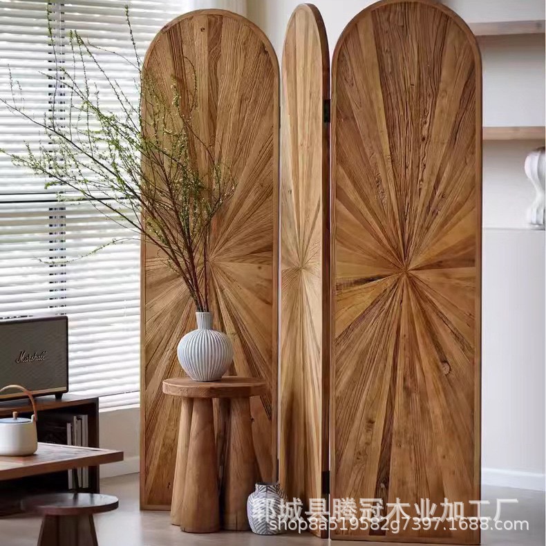 오래된 느릅나무 스크린 입구 문 파티션 홈 침실 차단 단단한 나무 이동식 접이식 스크린