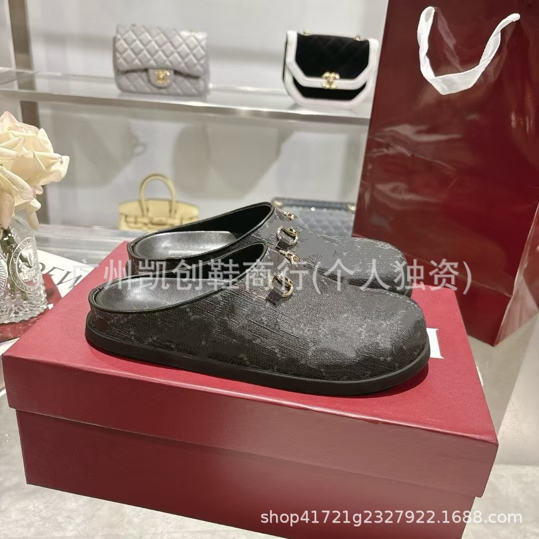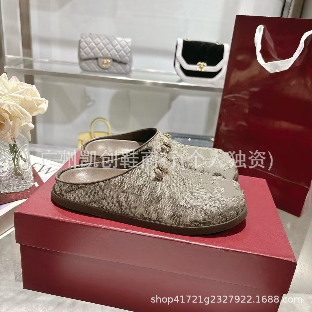 2025G 남성과 여성을 위한 새로운 스타일 커플 뮬러 신발, 여성용 말 버클 두꺼운 밑창 캐주얼 게으른 신발, 발가락 슬리퍼스토어 가기