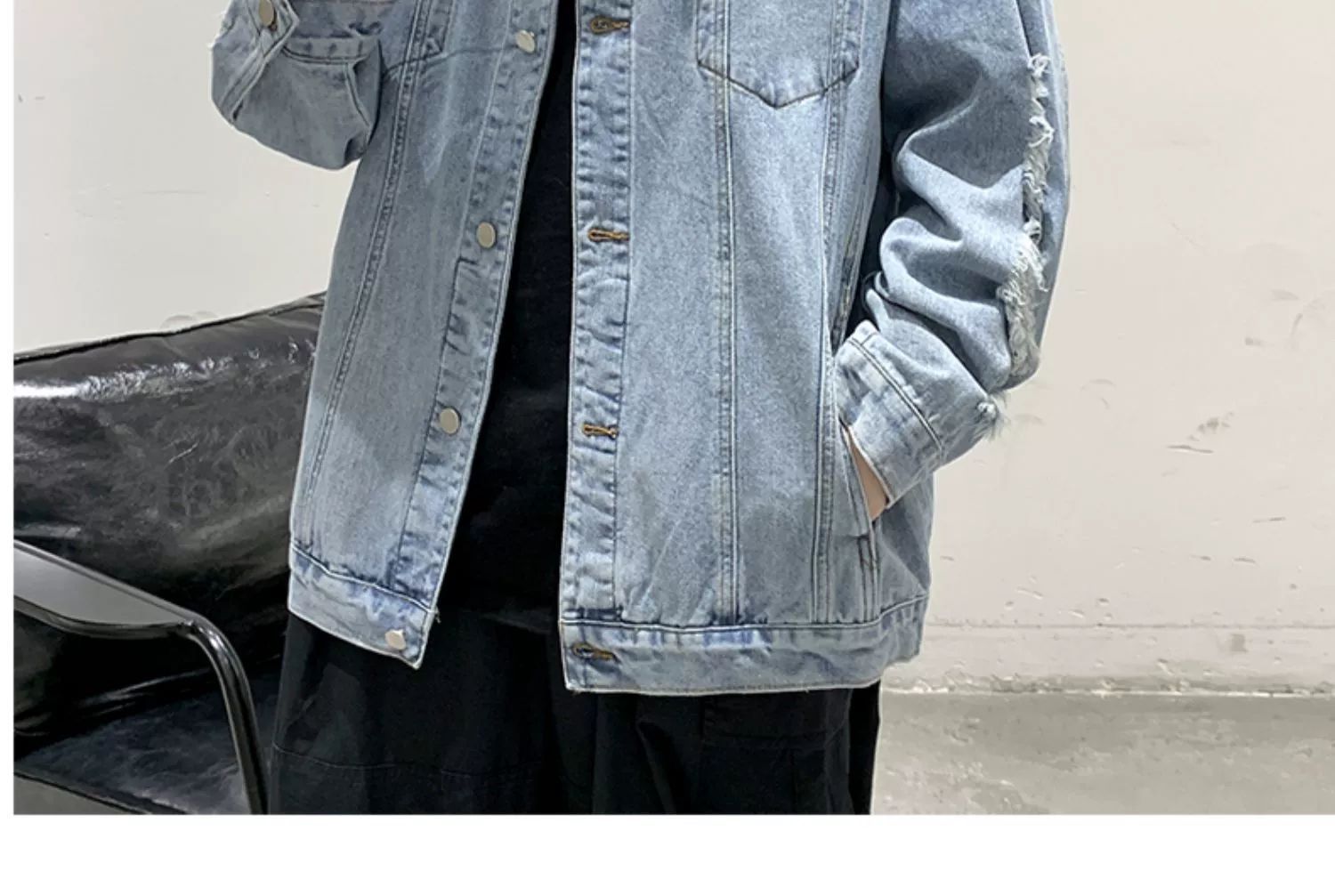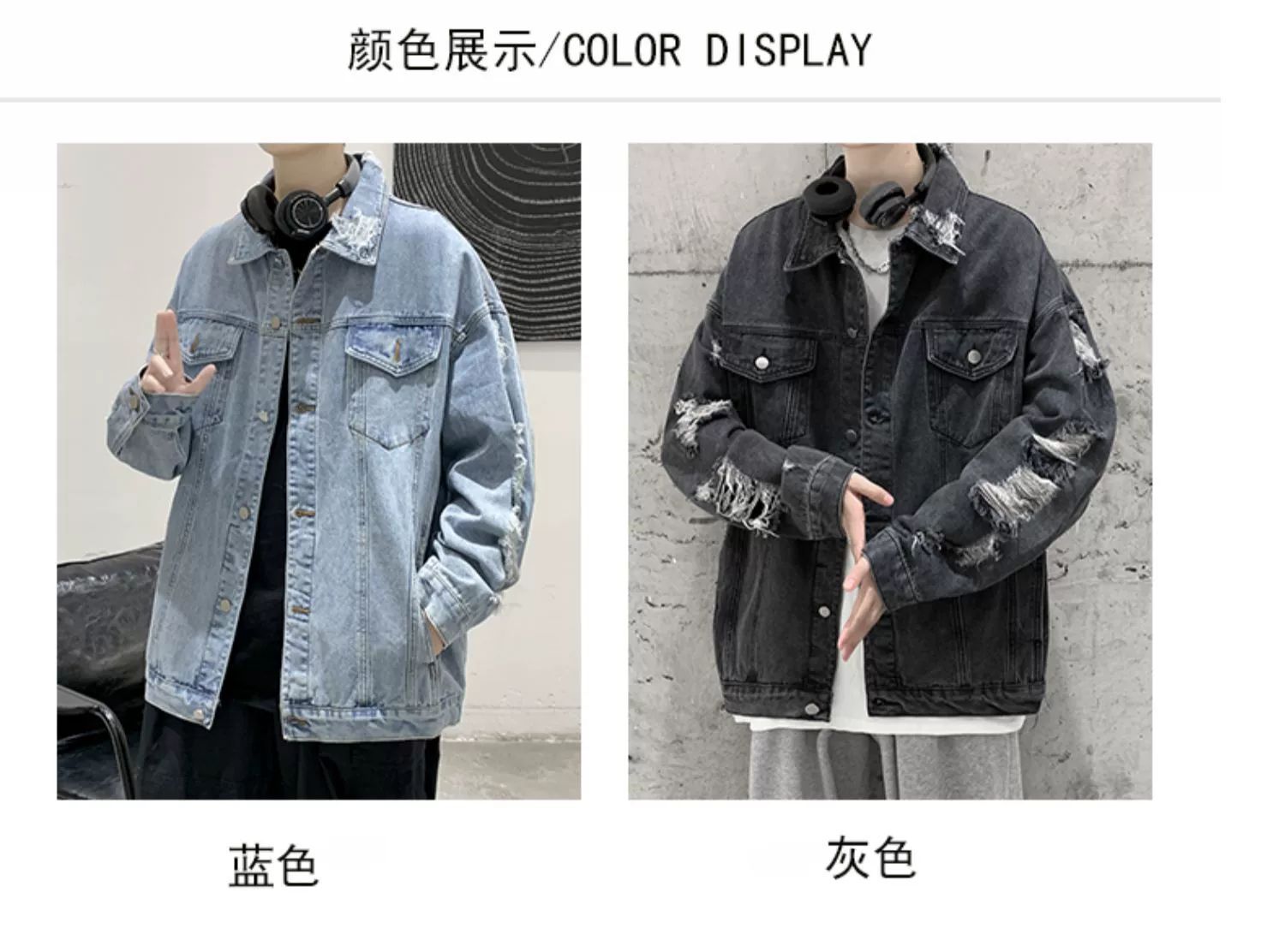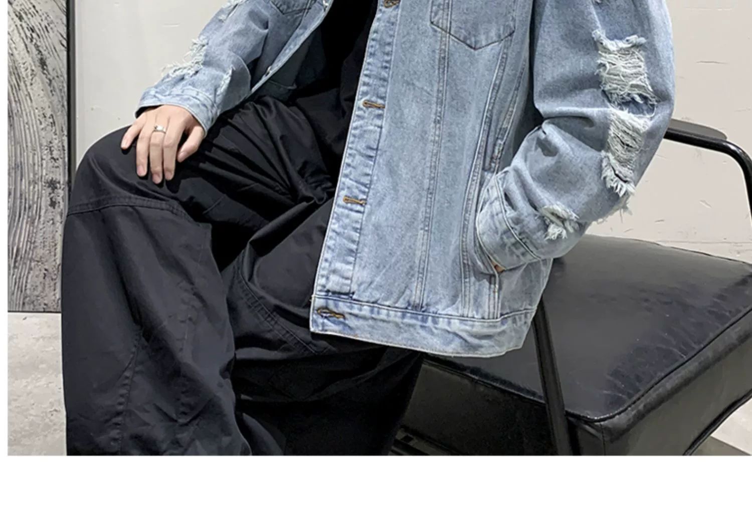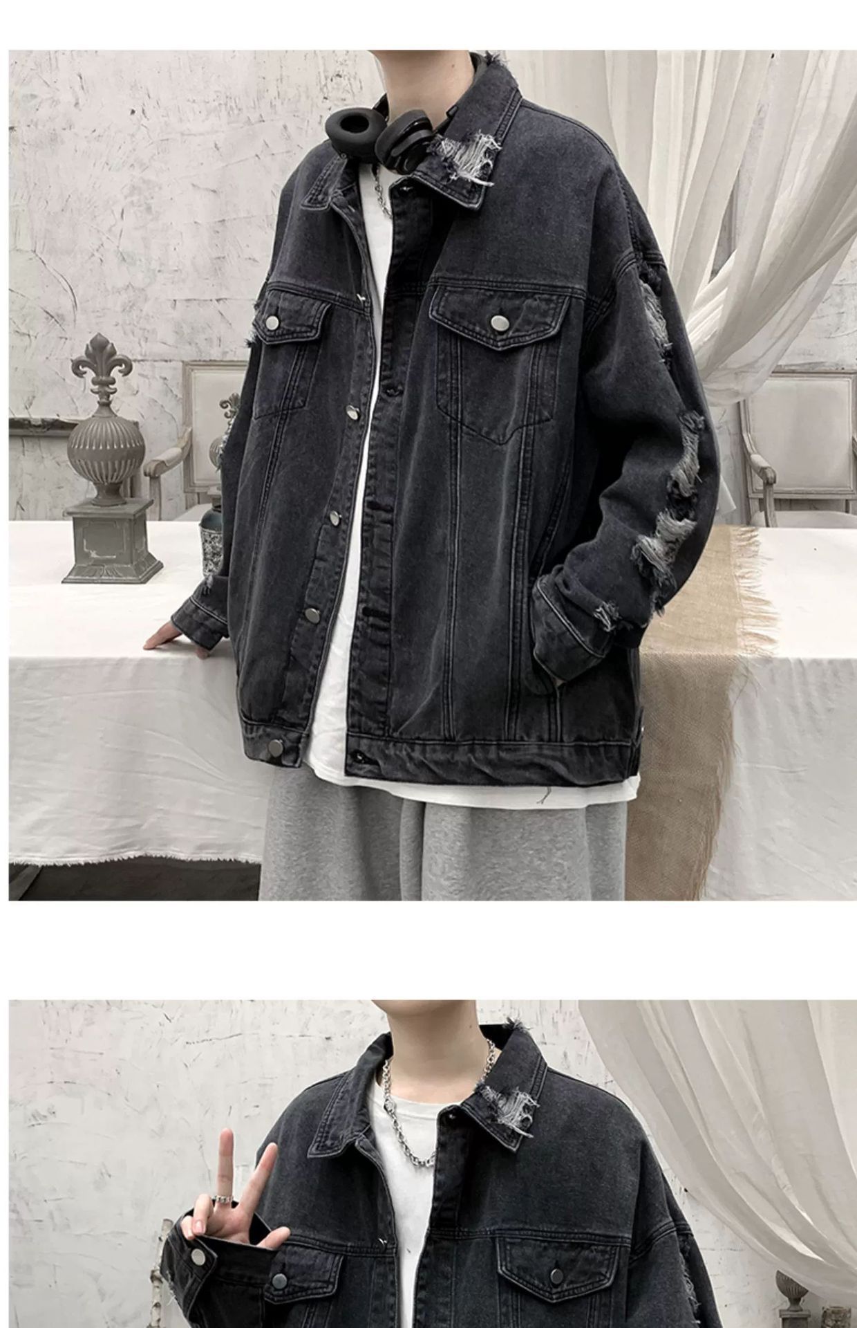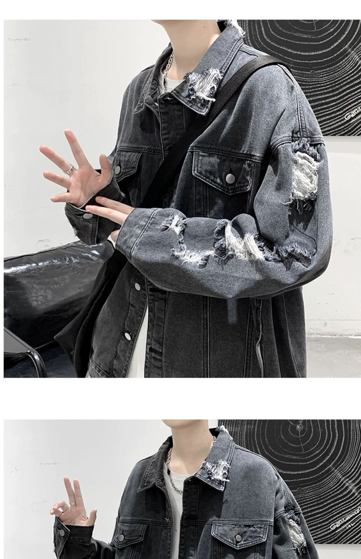 가을 남성용 데님 재킷, 루즈하고 고급스럽고 멋진 유럽과 미국의 하이 스트리트 힙합 하이 스트리트 봄, 가을 찢어진 재킷스토어 가기
