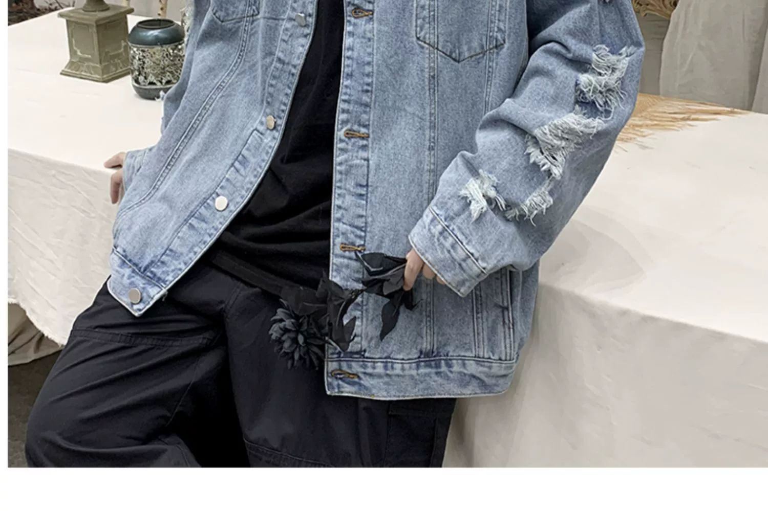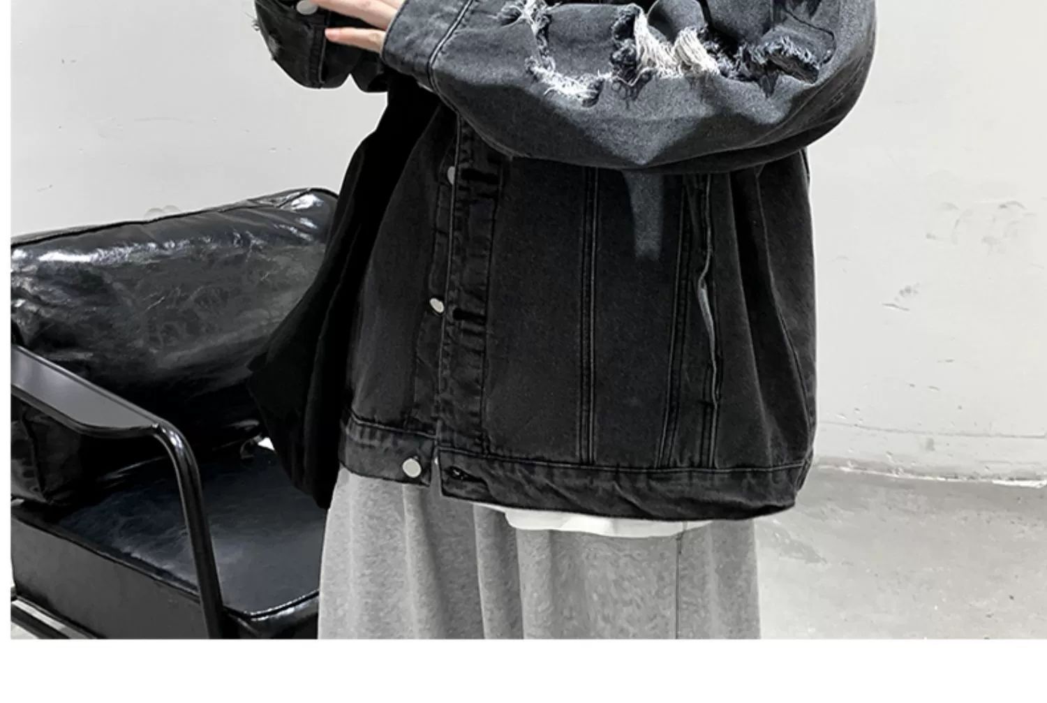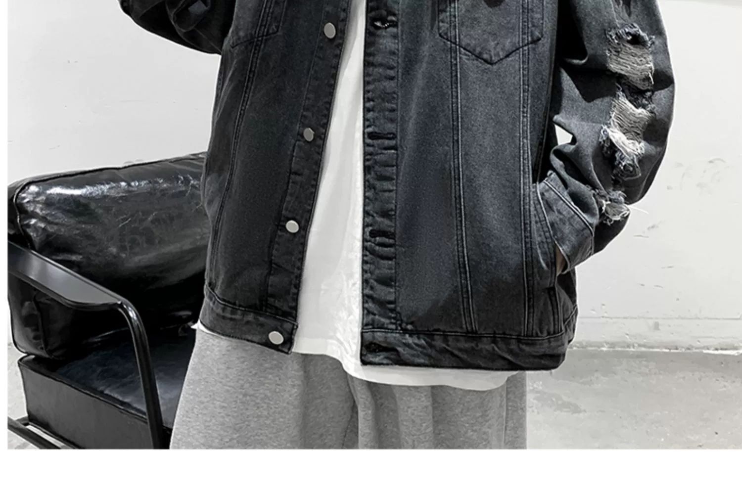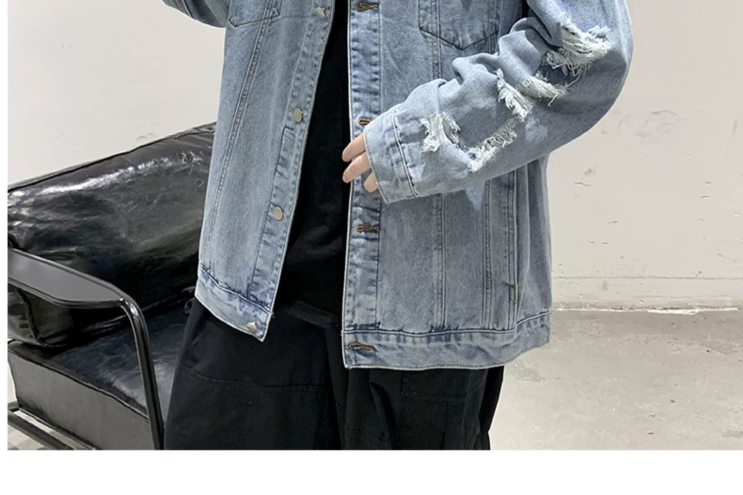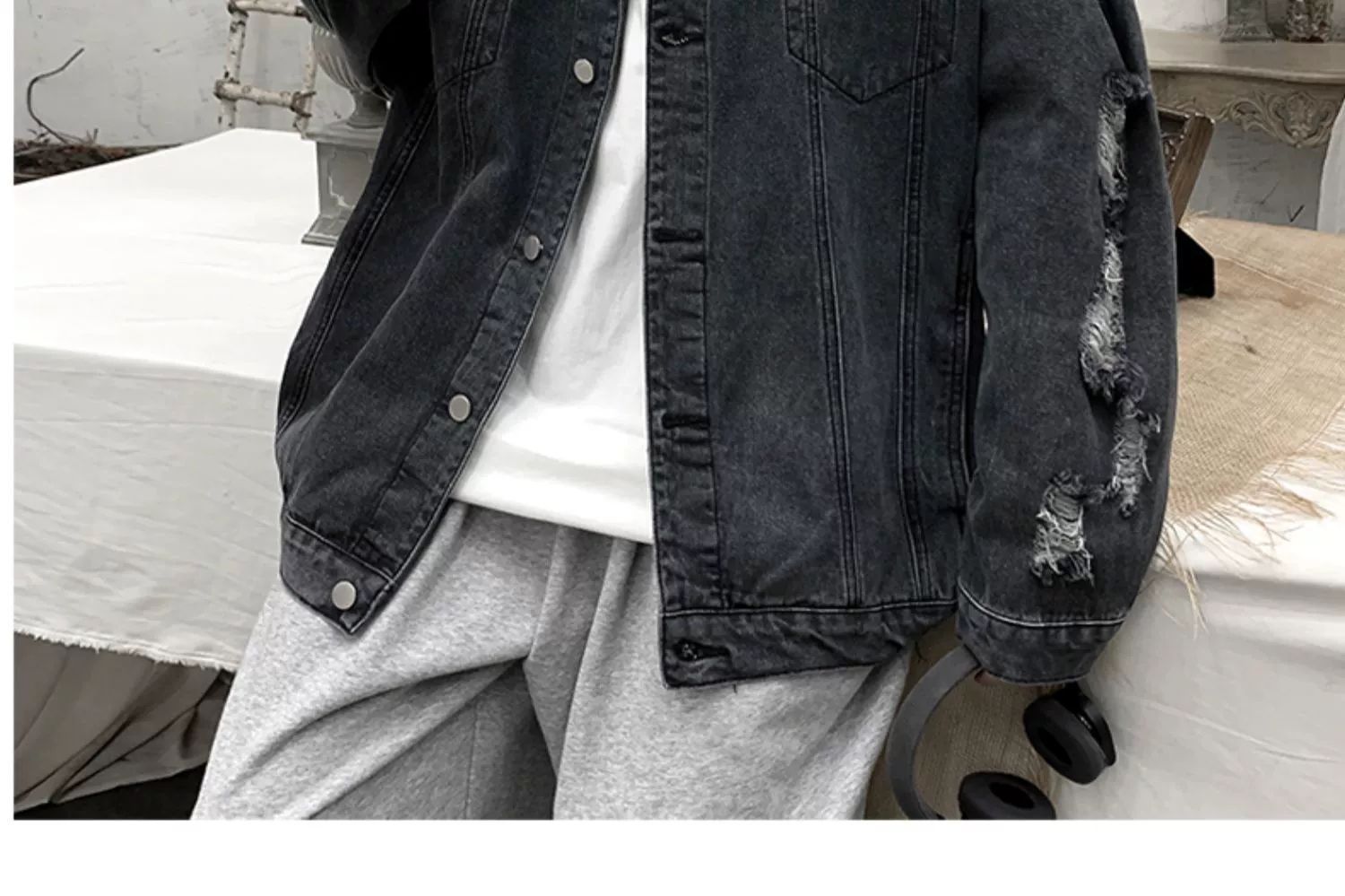 가을 남성용 데님 재킷, 루즈하고 고급스럽고 멋진 유럽과 미국의 하이 스트리트 힙합 하이 스트리트 봄, 가을 찢어진 재킷스토어 가기