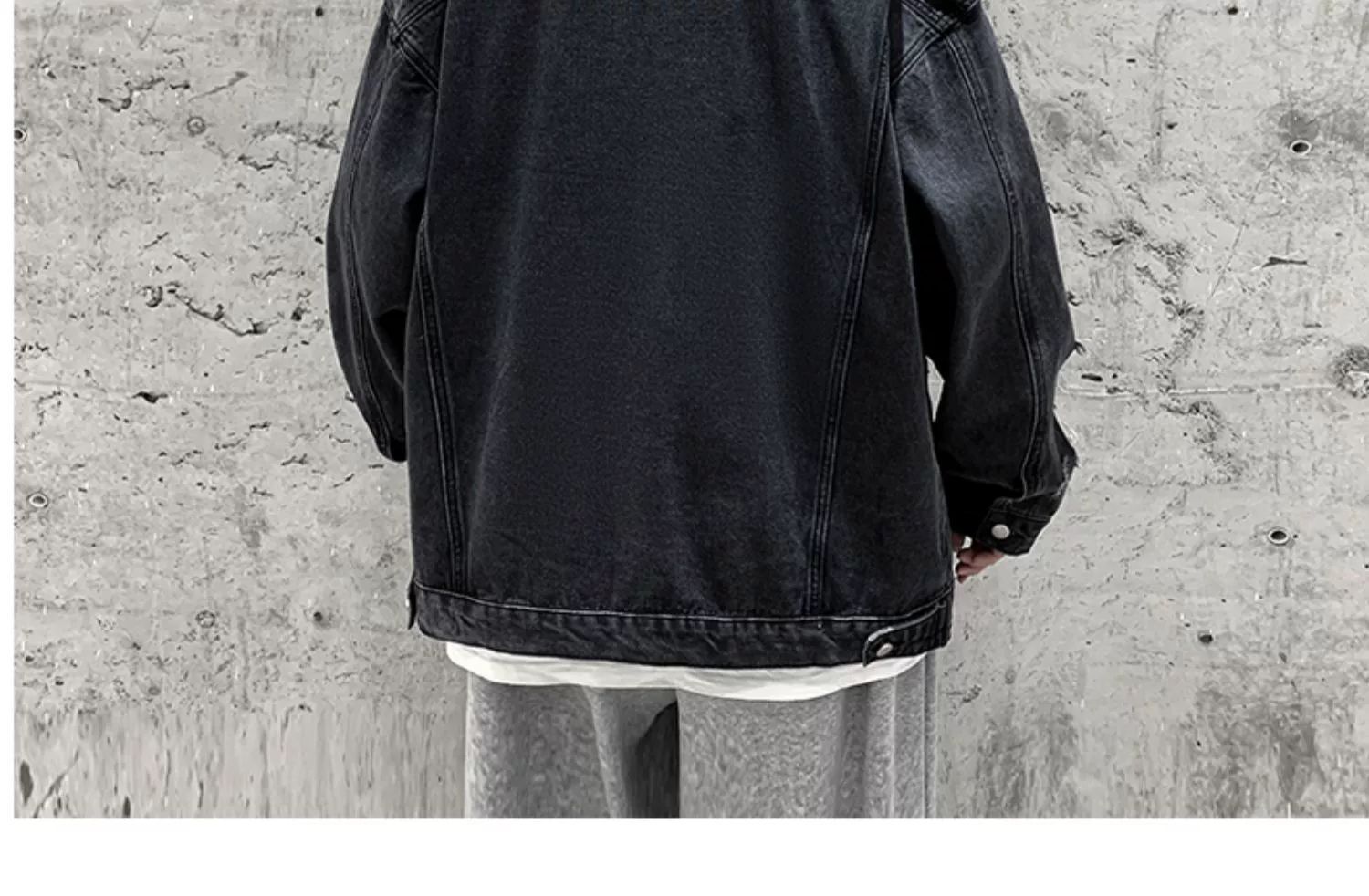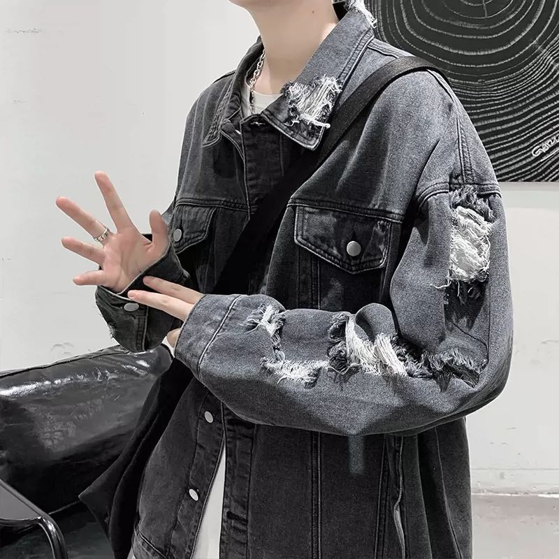 가을 남성용 데님 재킷, 루즈하고 고급스럽고 멋진 유럽과 미국의 하이 스트리트 힙합 하이 스트리트 봄, 가을 찢어진 재킷