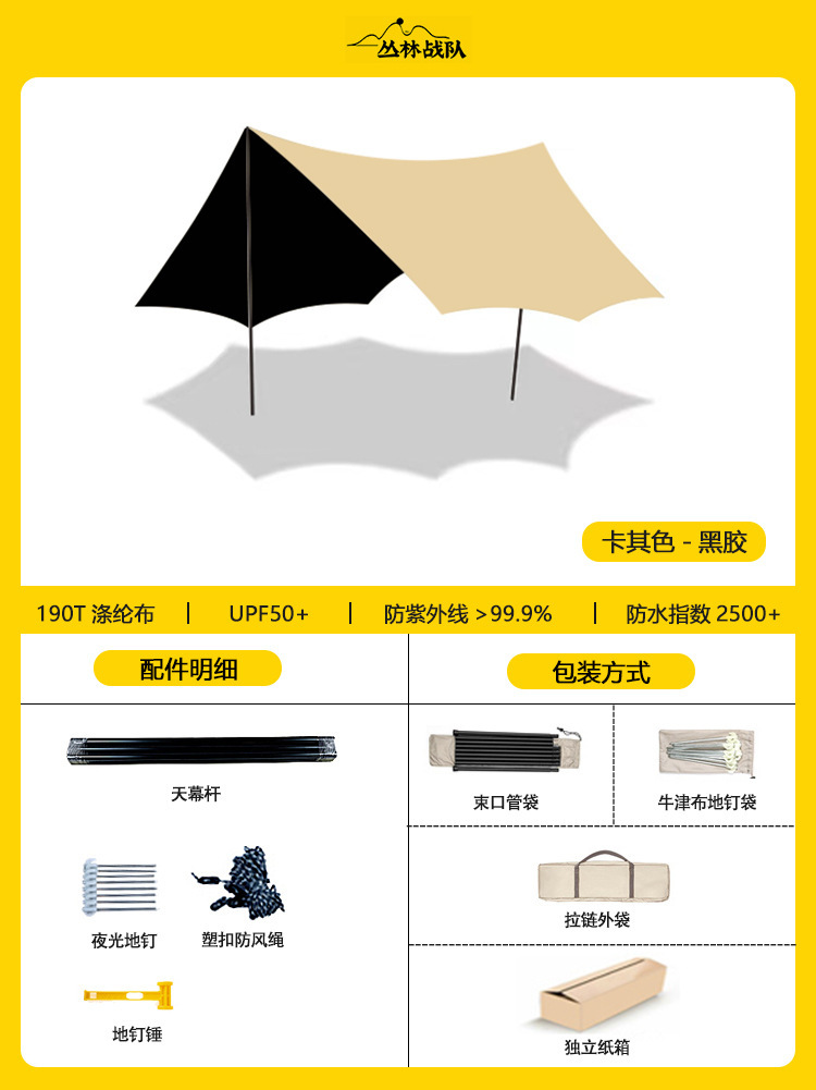 캐노피 텐트 야외 캠핑 완전 차광 및 자외선 차단제 검정색 비닐 캐노피 두꺼운 실버 접착제 캠핑 차양 및 비 방지 텐트스토어 가기