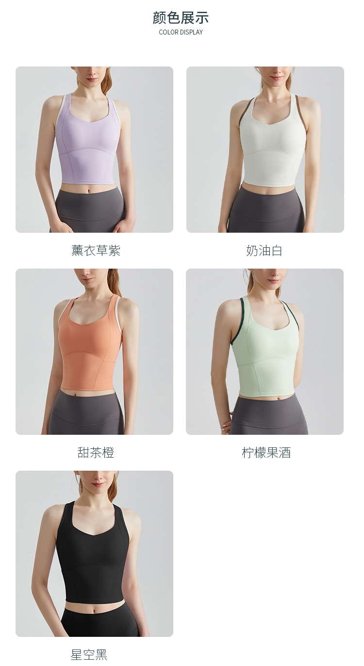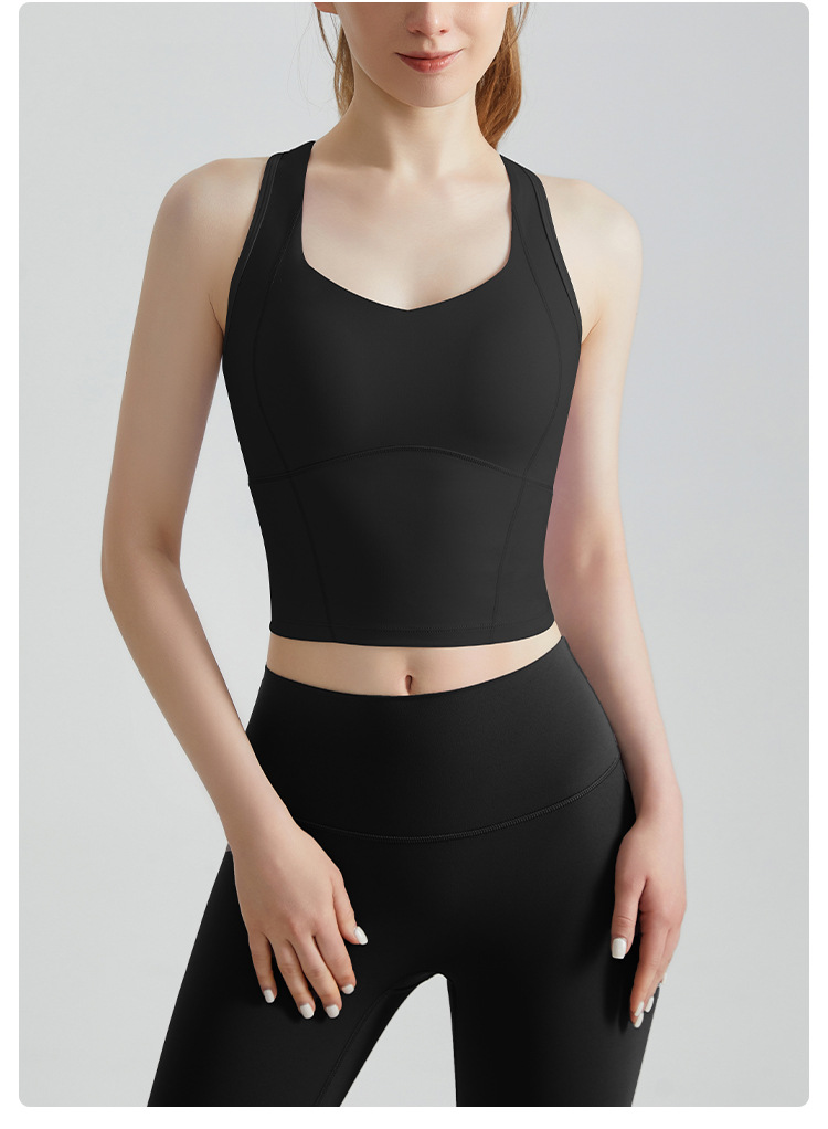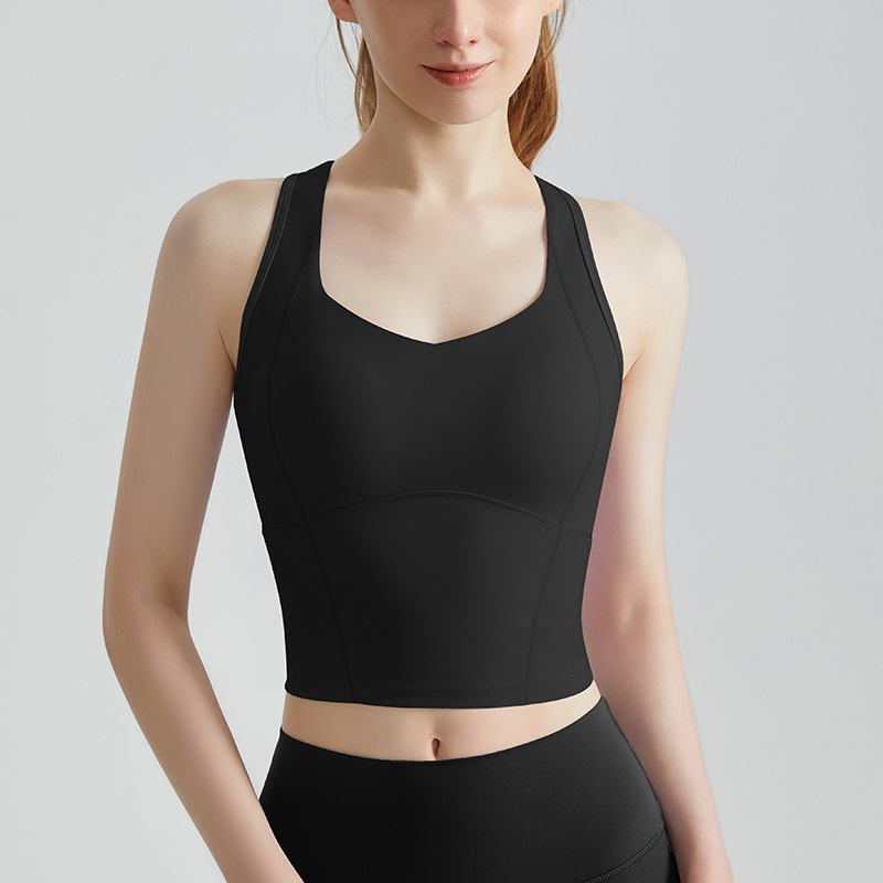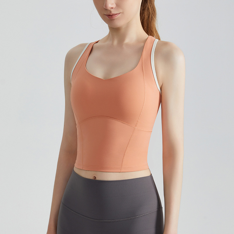 CD 고강도 스포츠 조끼 여성 피트니스 충격 방지 푸시 업 고정 컵 긴 측면 유방 커버 아름다운 다시 요가 조끼 여름