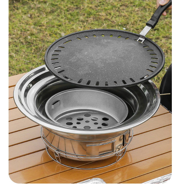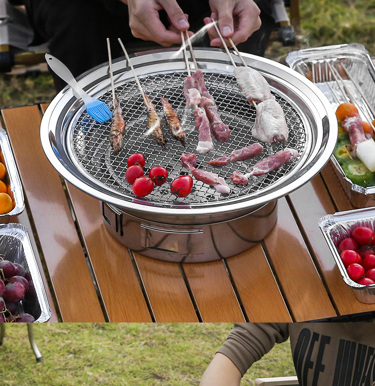 야외 바베큐 그릴 가정용 소형 접이식 바베큐 그릴 숯 무연 원형 그릴 바베큐 레스토랑 특수 그릴 세트