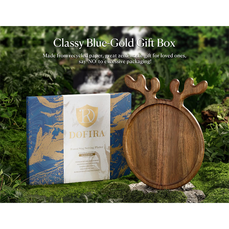 스팟 나무 뿔 트레이 크리스마스 트레이 아카시아 나무 과일 건조 과일 트레이 단단한 나무 디너 트레이 일본식 차 트레이