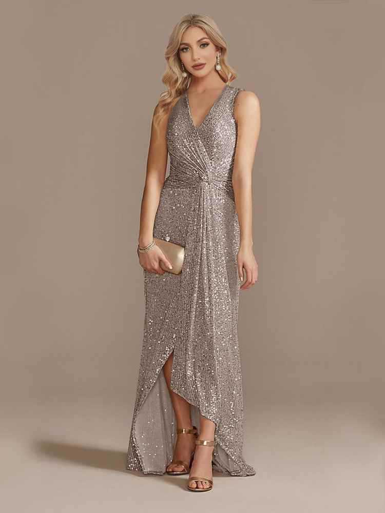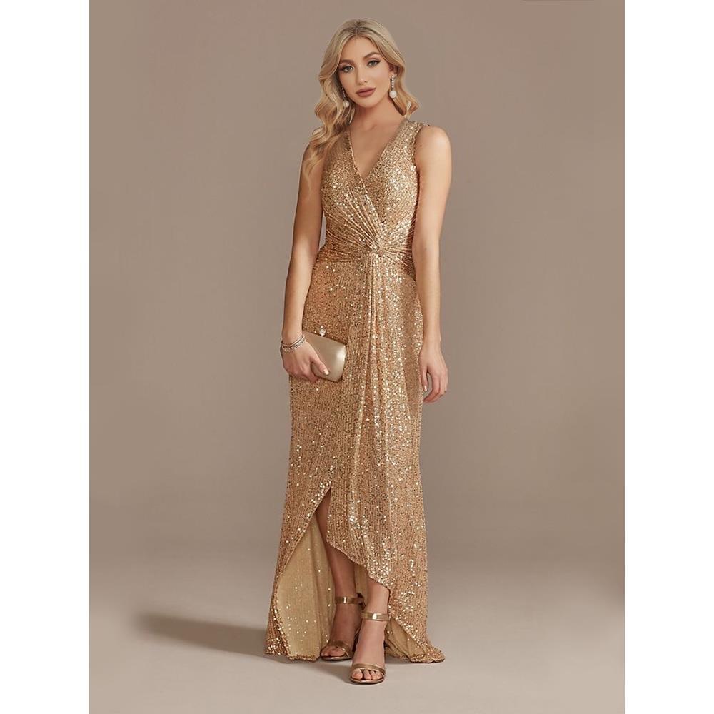V 넥 이브닝 드레스 웨딩 파티 스팽글 댄스 파티 드레스 크로스보더