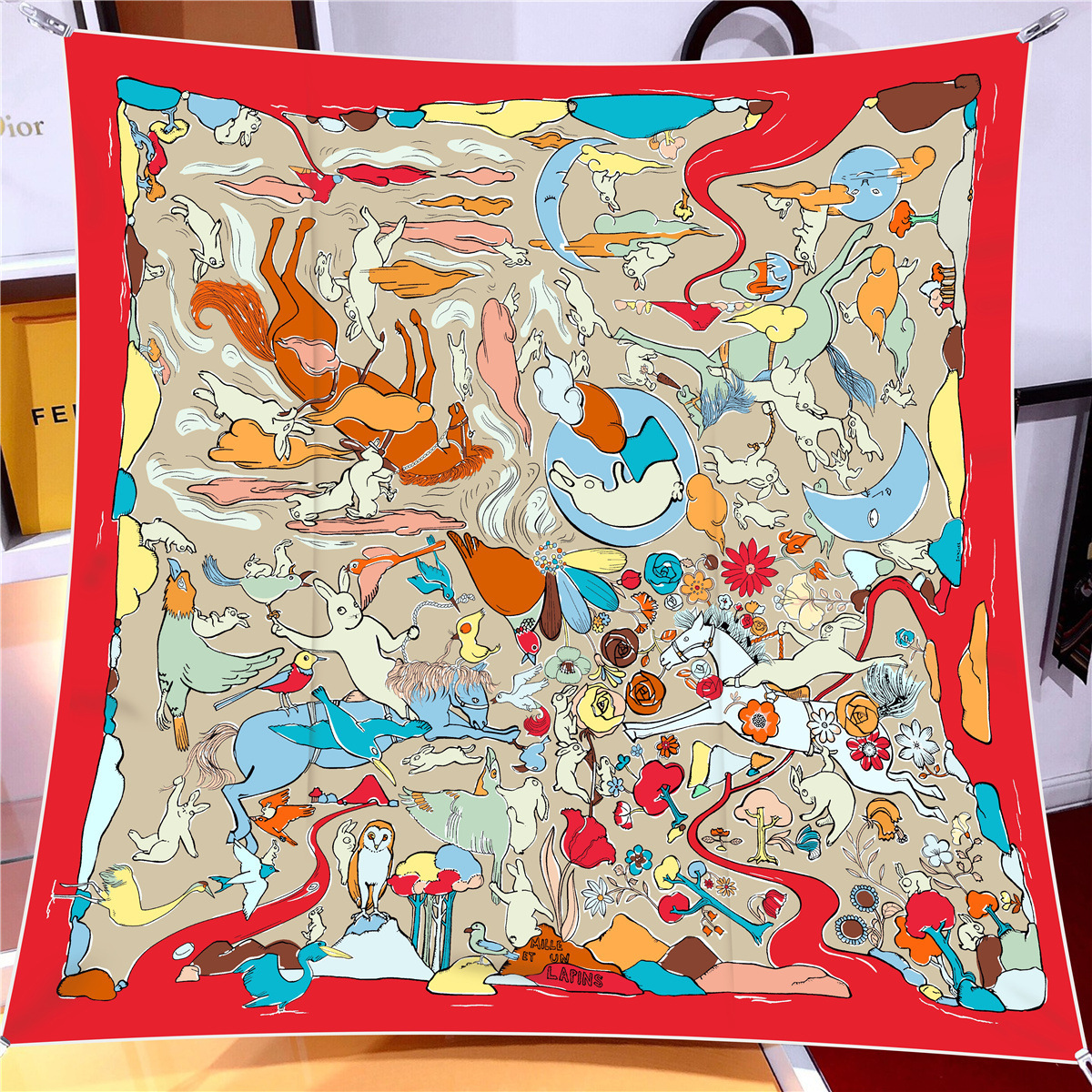 90cm 스퀘어 스카프, 모조 실크, 우아한 스퀘어 스카프, 가벼운 럭셔리, 여성용 스카프, 숄, 자외선 차단제 실크 스카프, 선물 도매