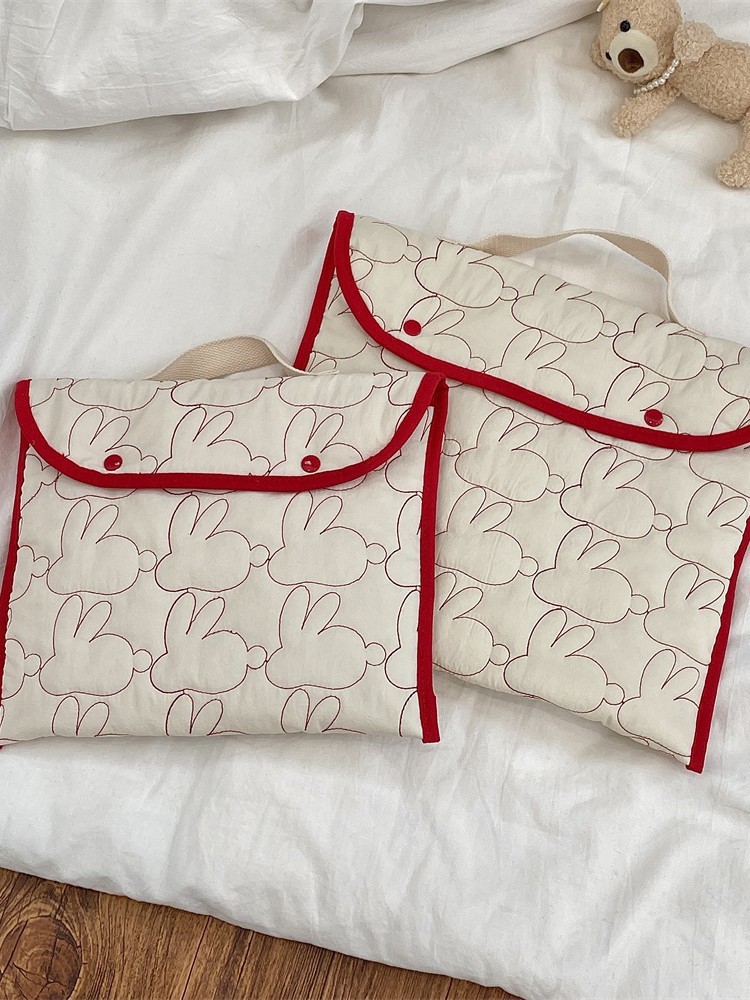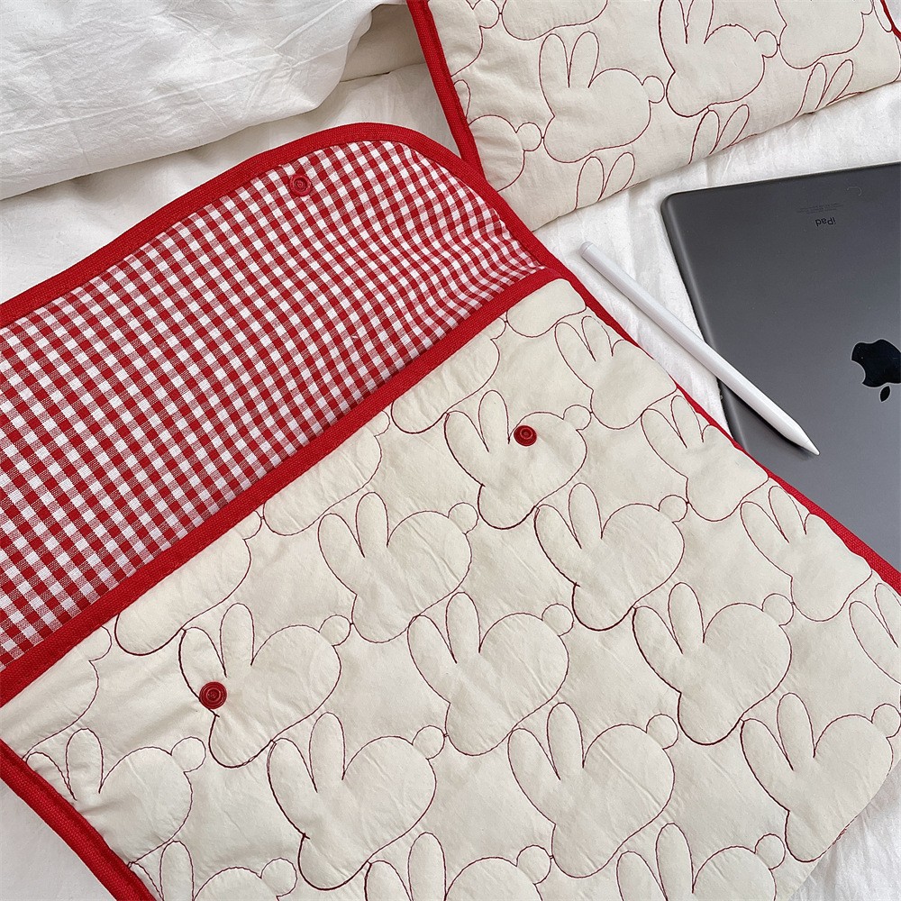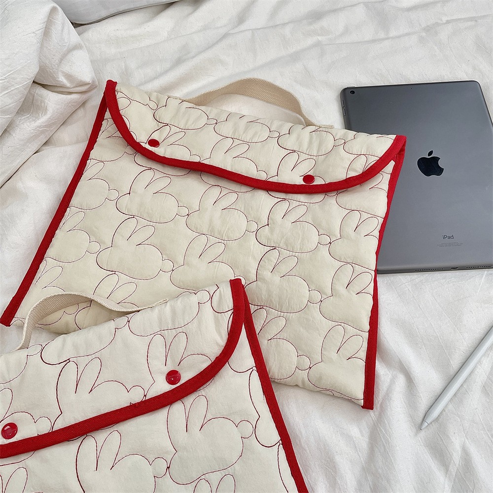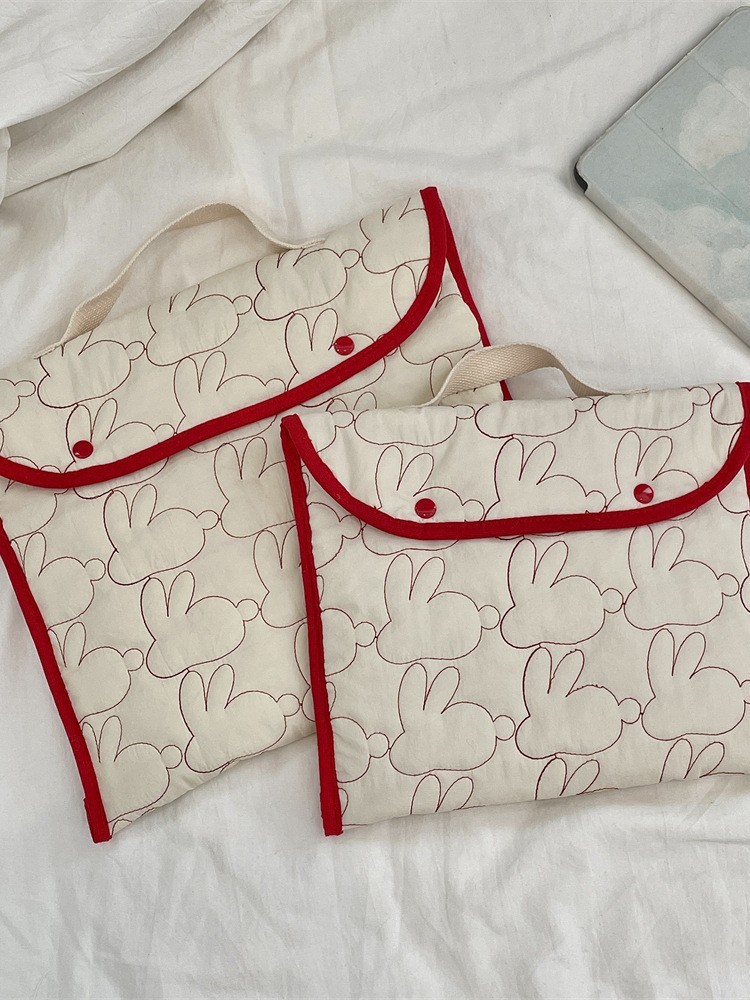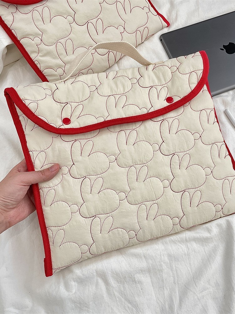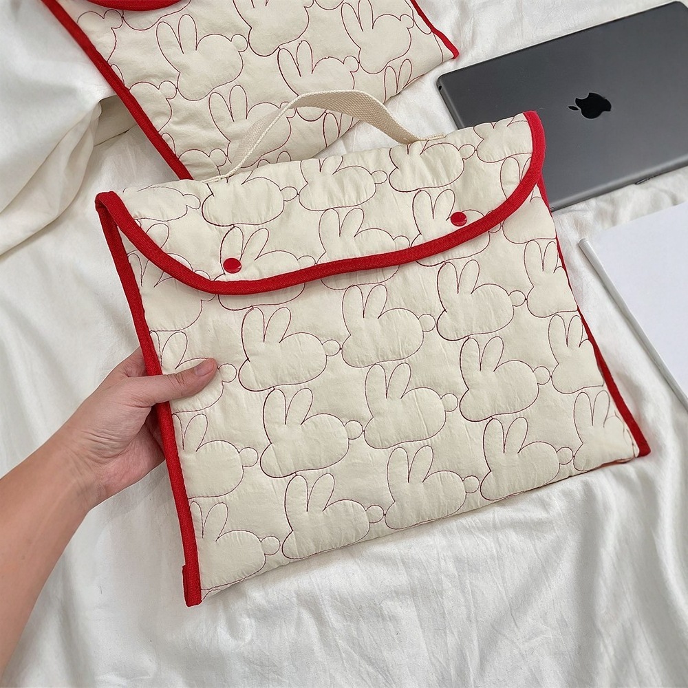 국경 간 한국어 자수 토끼 패턴 휴대용 태블릿 가방 11/ 13inch ipad 노트북 보관 가방