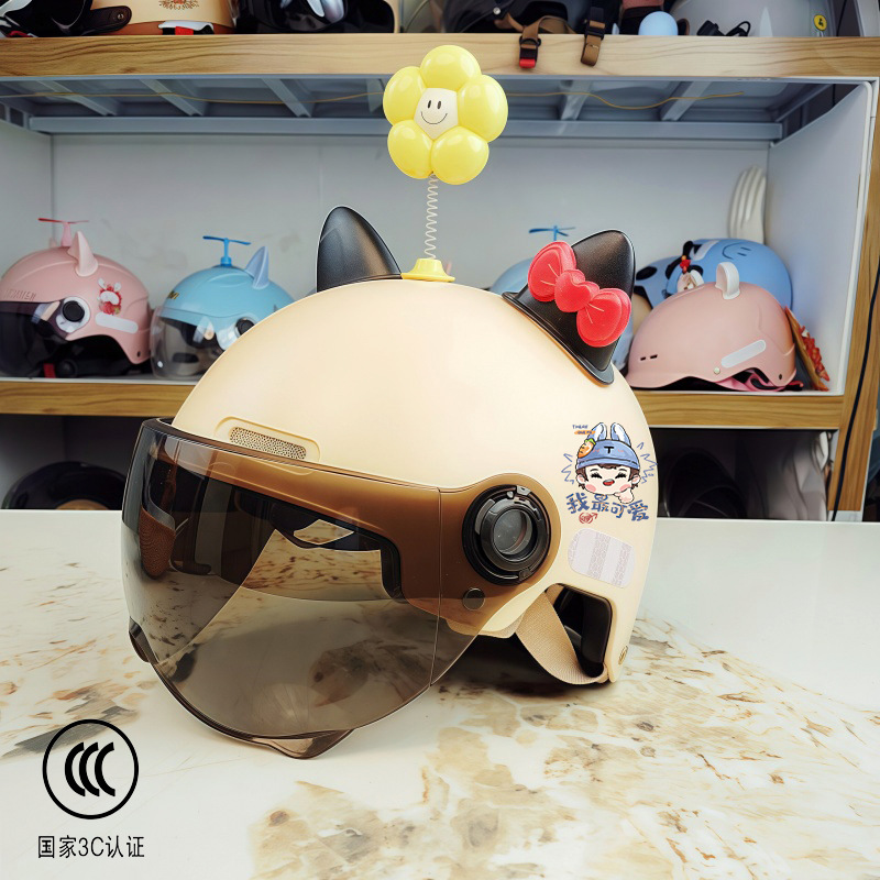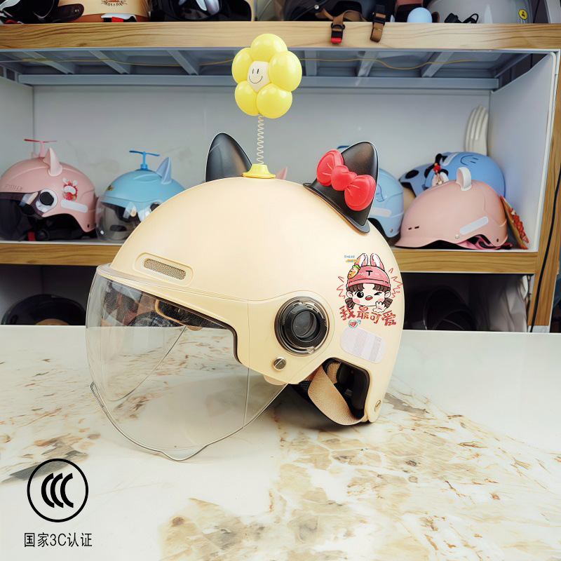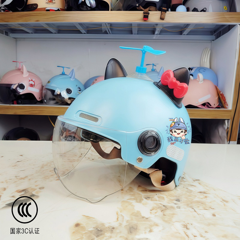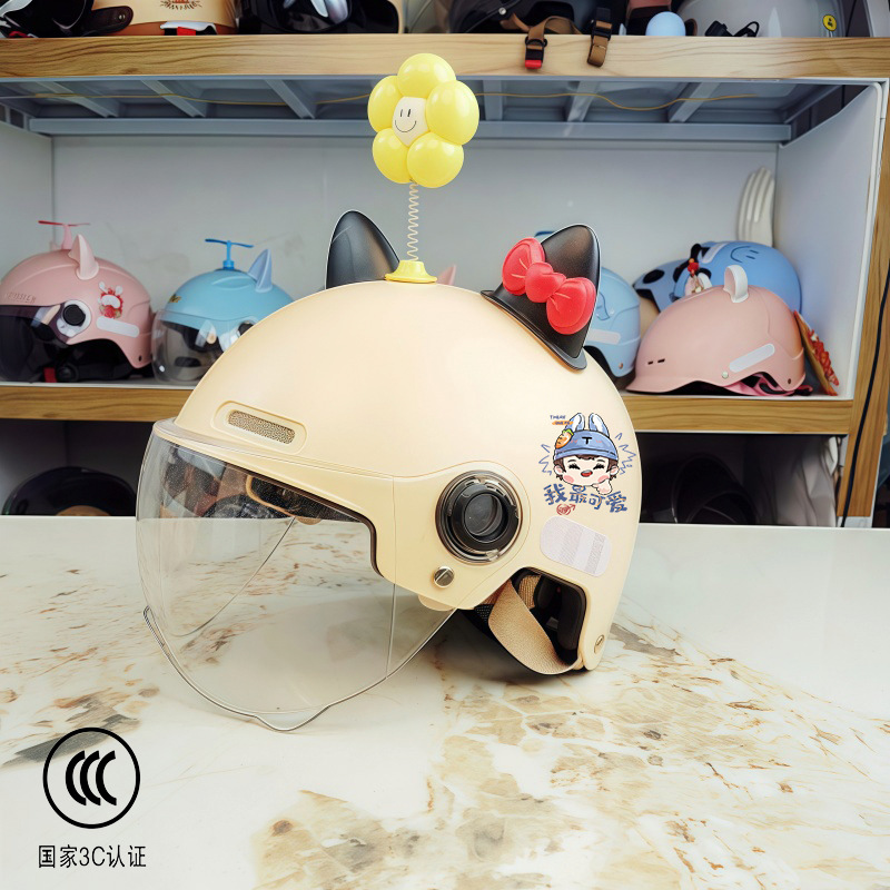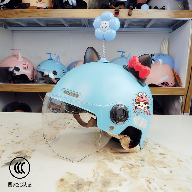 새로운 국가 표준 3C 인증 어린이 전기 오토바이 헬멧 소년과 소녀 올 시즌 안전 헬멧 학생 하프 헬멧