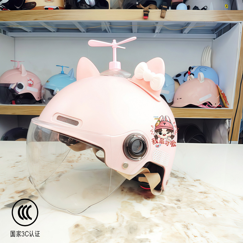 새로운 국가 표준 3C 인증 어린이 전기 오토바이 헬멧 소년과 소녀 올 시즌 안전 헬멧 학생 하프 헬멧스토어 가기