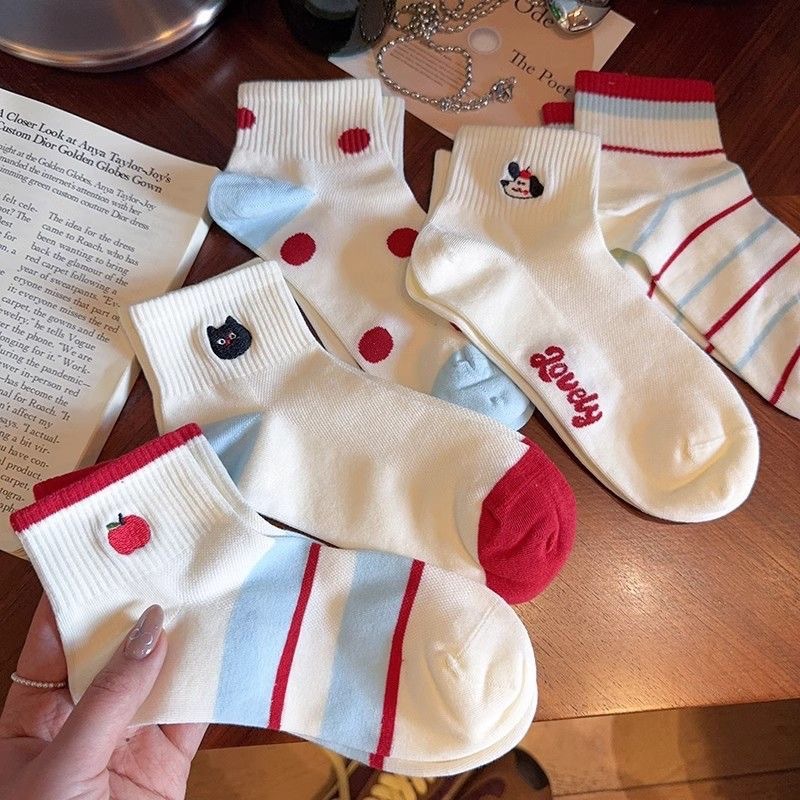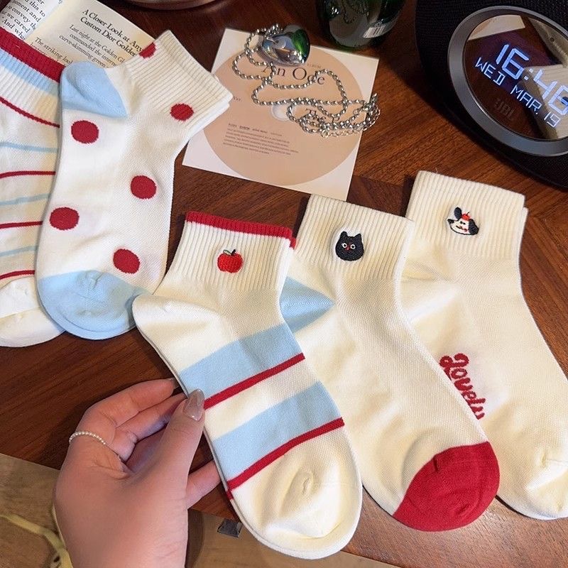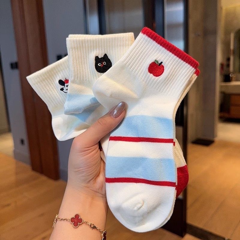 여름 얇은 메쉬 양말 여성 양말 귀여운 한국어 만화 ins 트렌디 일본 대학 스타일 자수 로우 컷 양말