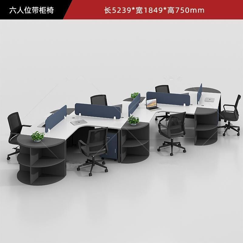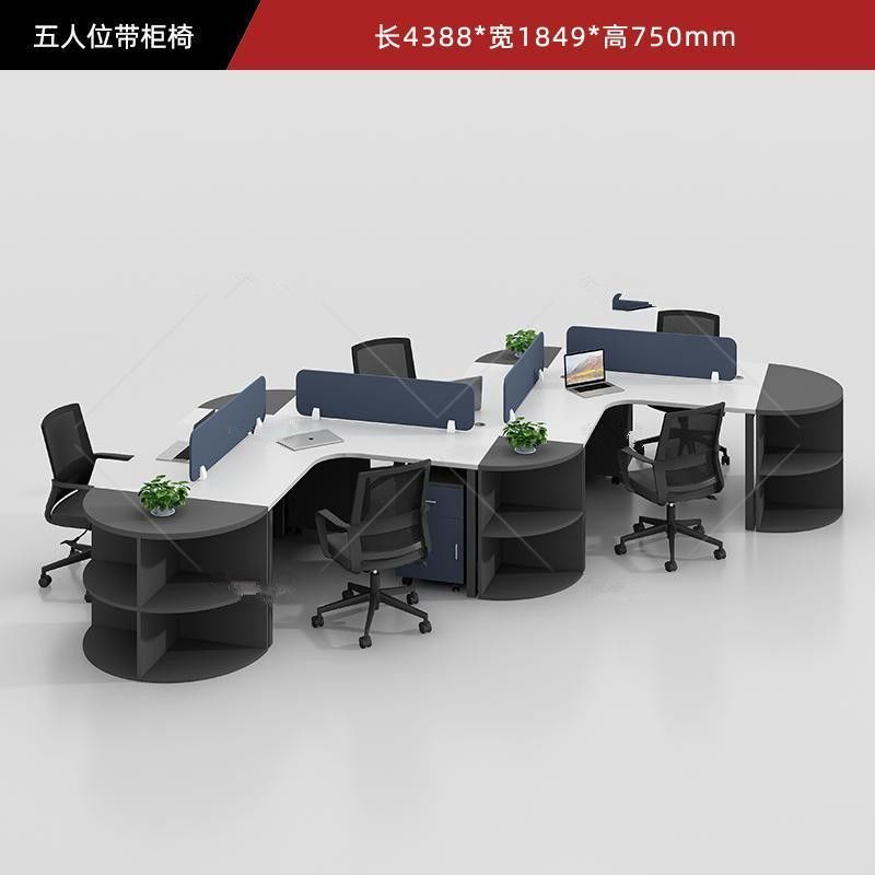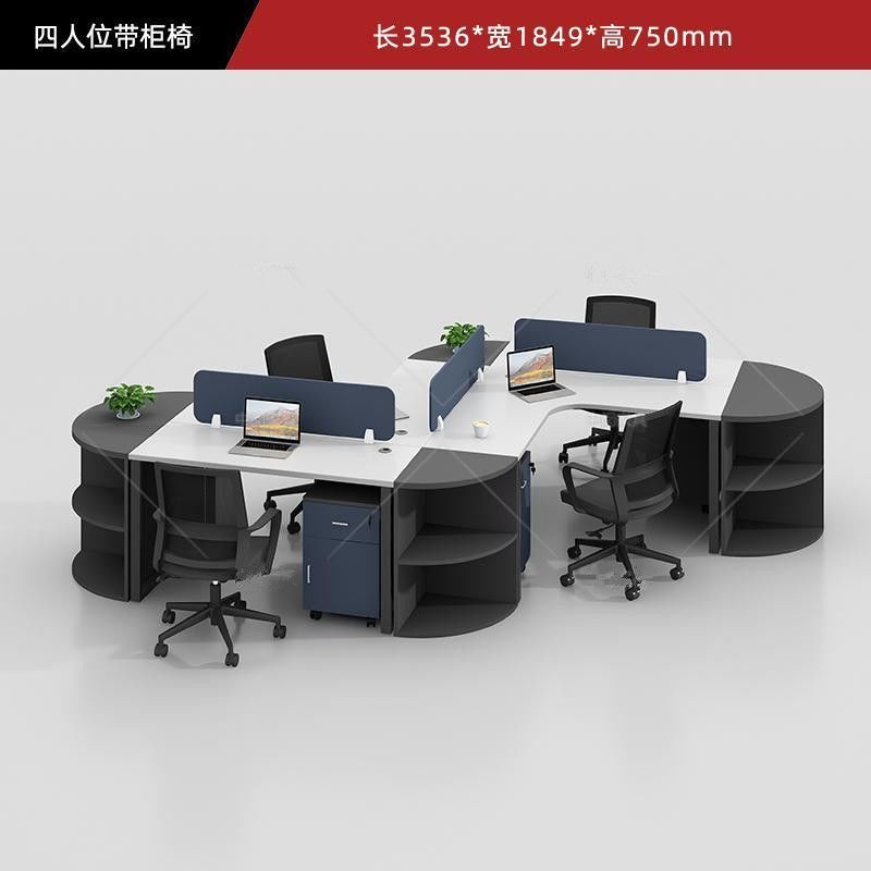 현대적인 창의적인 사무실 책상과 의자 조합, 심플하고 패셔너블한 2/4/6인 스테이션, 3인 특수 모양 직원 컴퓨터 책상스토어 가기