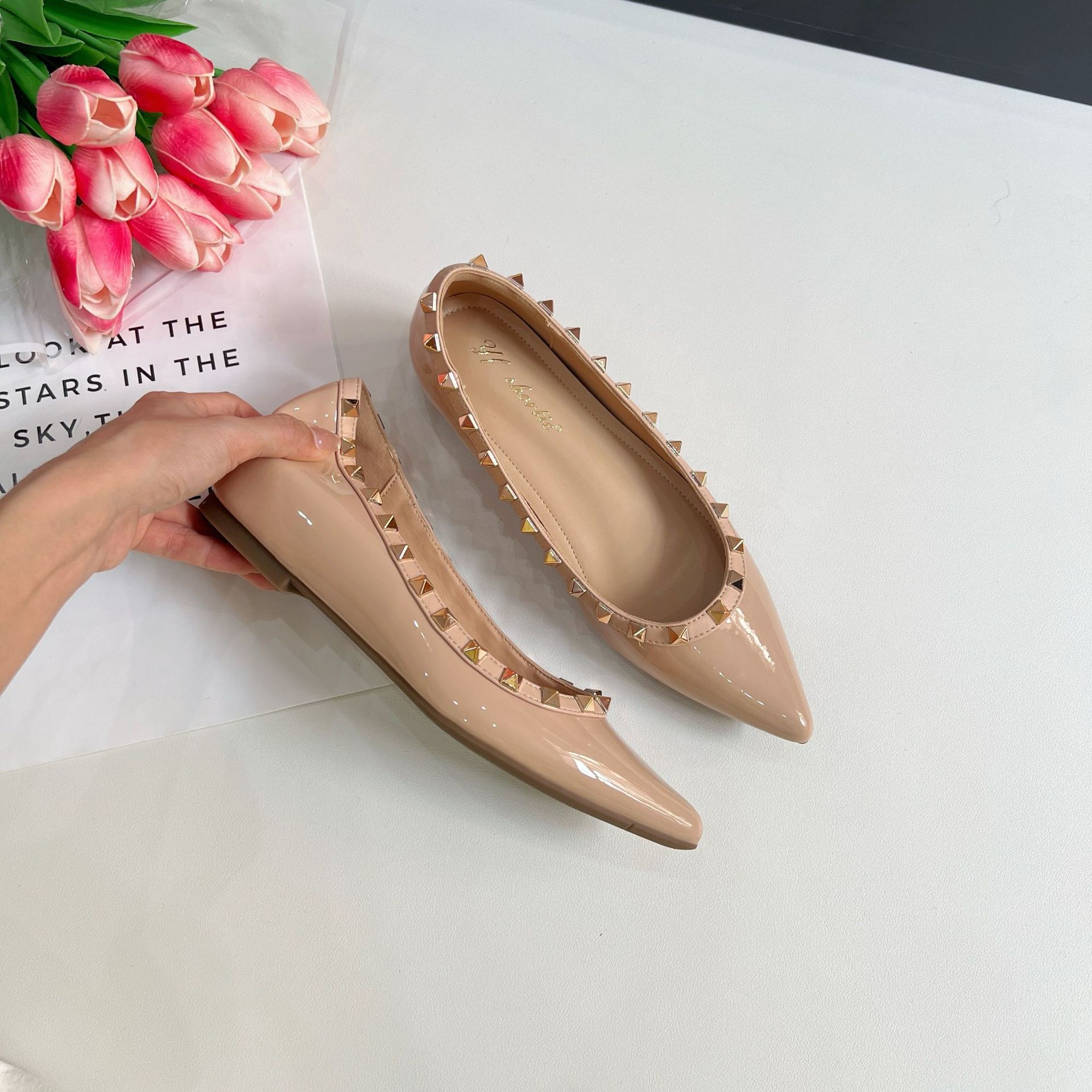 2025년 봄 가을 신상 여성용 싱글 슈즈, 뾰족한 앞코와 리벳, 프렌치 페이턴트 가죽, 패셔너블하고 활용도가 높은 펌프스 하이힐
