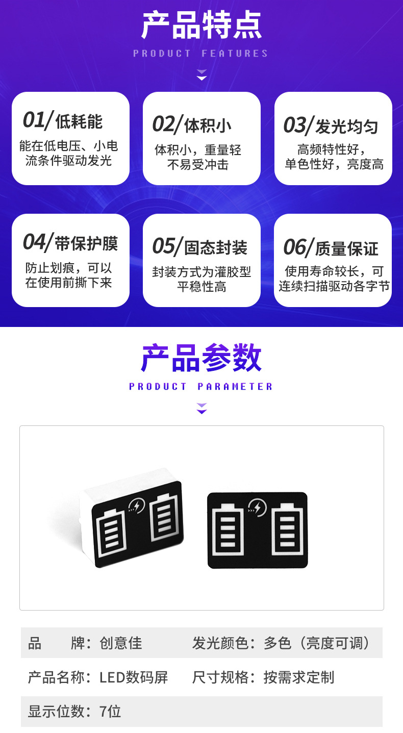 배터리 잔량 표시 LED 디지털 튜브 에너지 저장 전원 충전기 공용 양극 디지털 화면 SMT 패치 디지털 튜브
