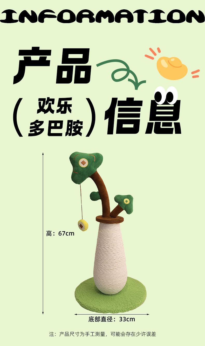 사자풀로프 행운의 나무 고양이 클라이밍 프레임 작은 고양이 스크래치 컬럼 수직 고양이 발톱 연삭 장치 장난감은 조각이 떨어지지 않습니다.