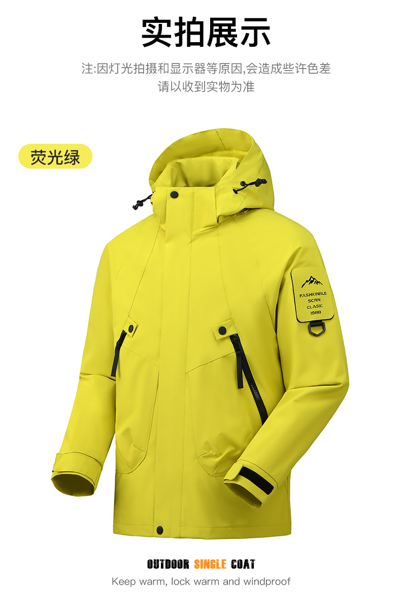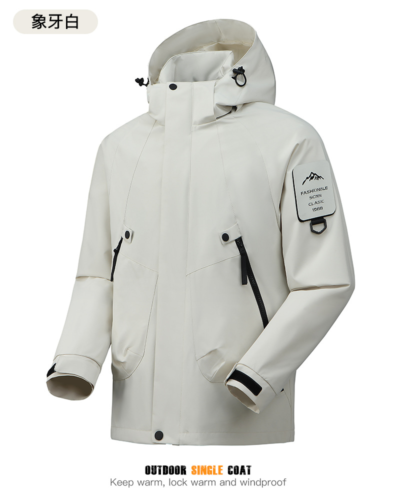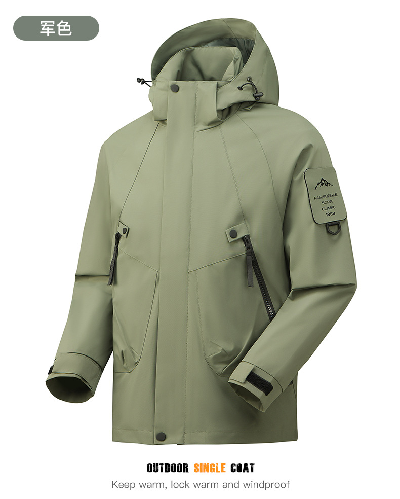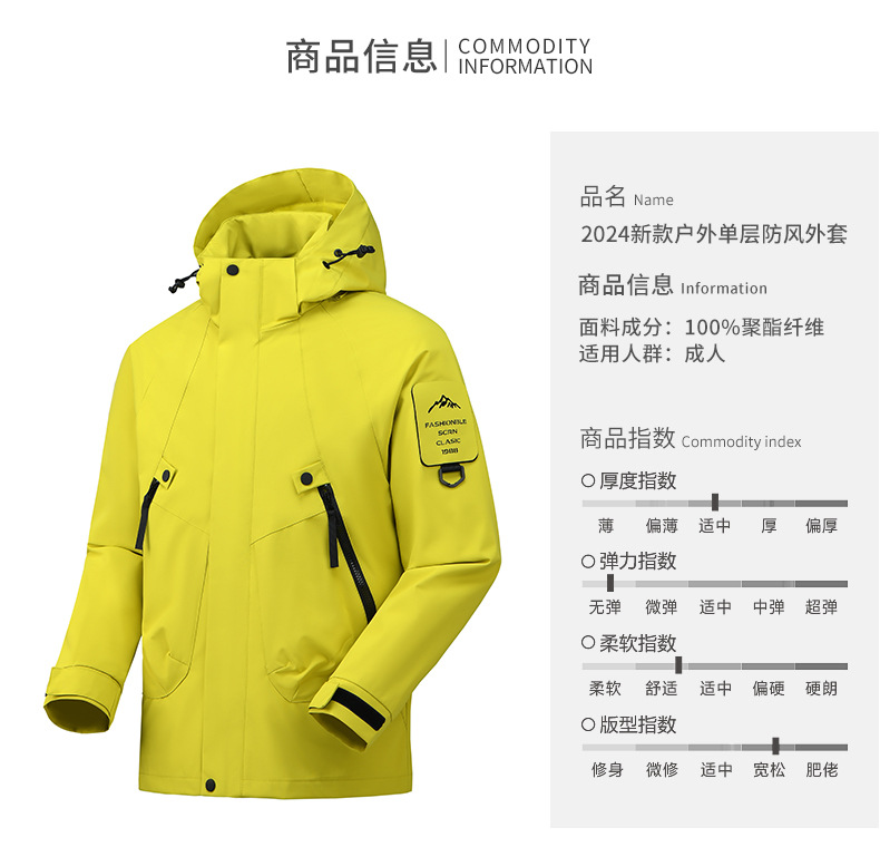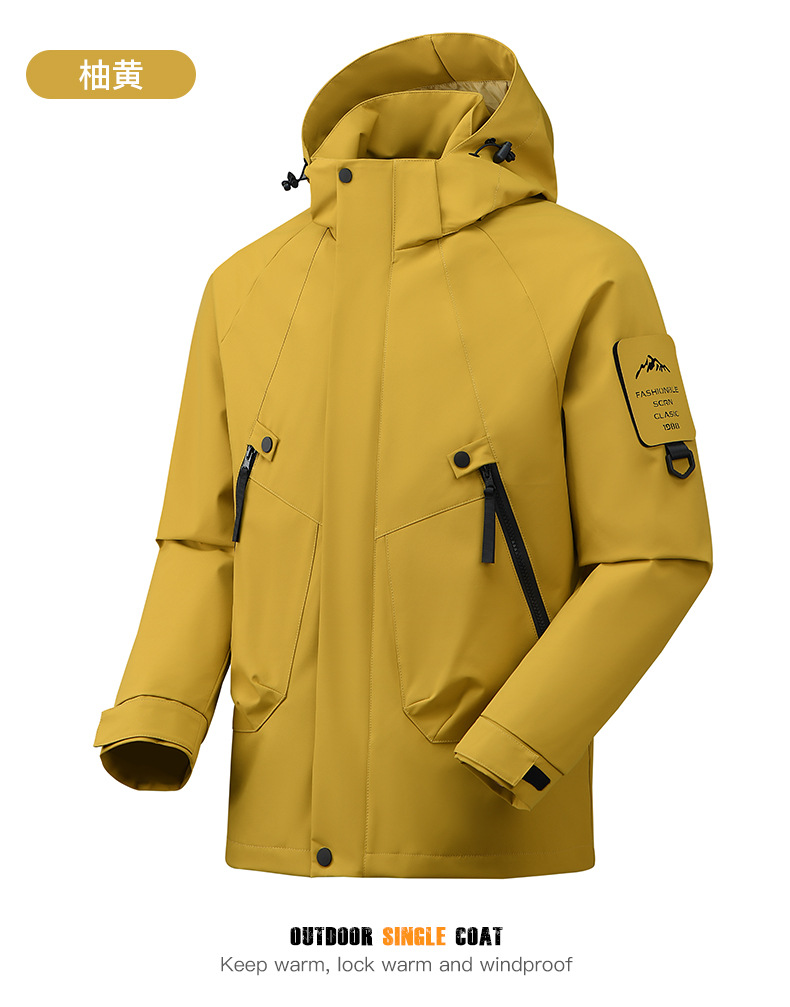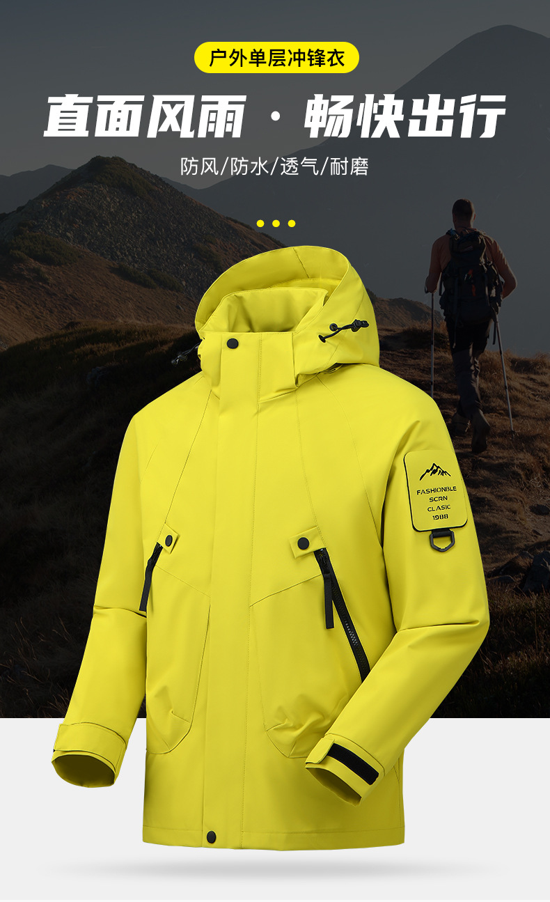 봄과 가을 새로운 캐주얼 아우터 커플 스타일 방풍, 방수 및 내마모성 후드 싱글 레이어 재킷 낚시 및 등산 재킷