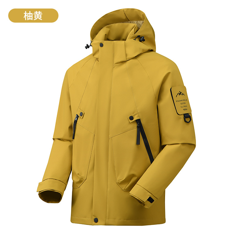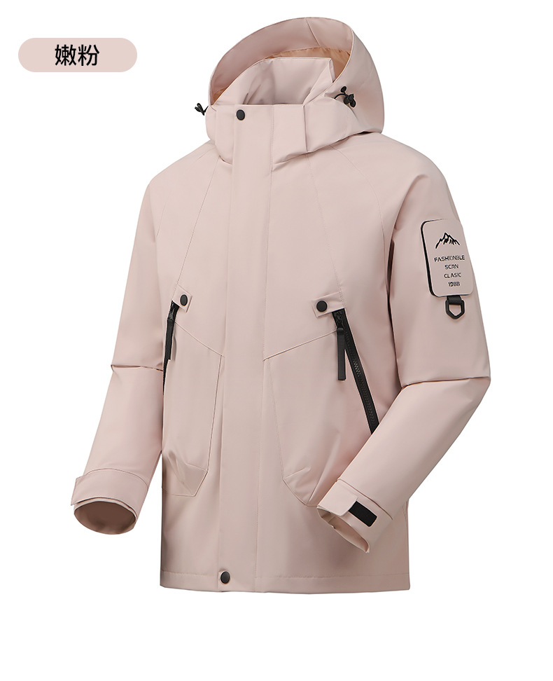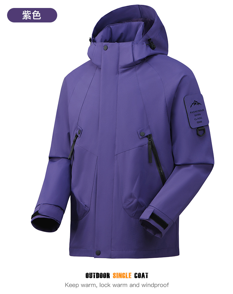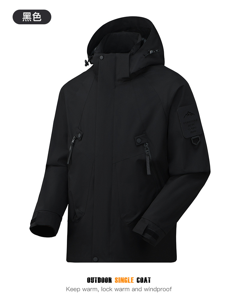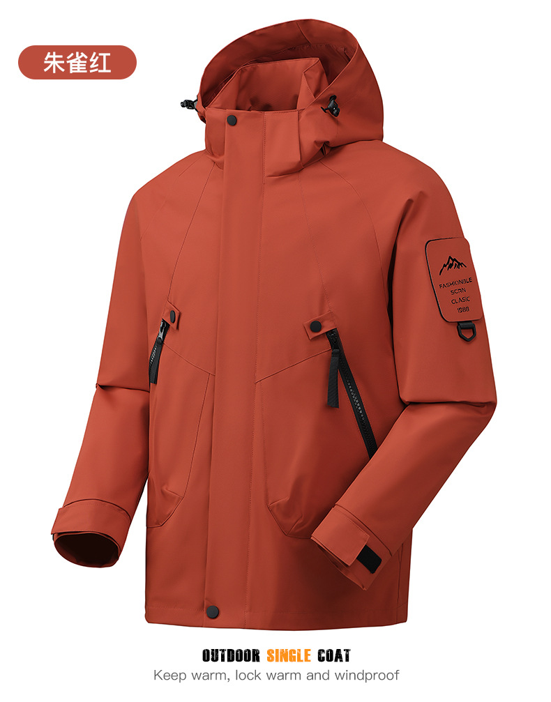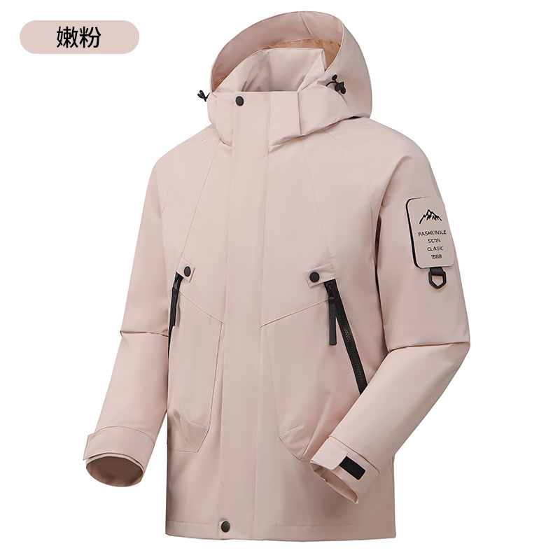 봄과 가을 새로운 캐주얼 아우터 커플 스타일 방풍, 방수 및 내마모성 후드 싱글 레이어 재킷 낚시 및 등산 재킷