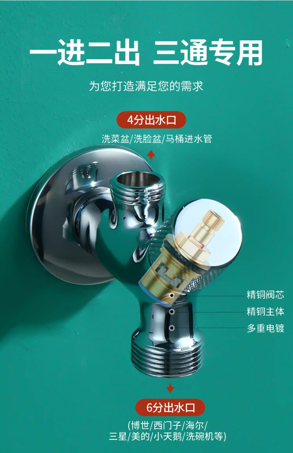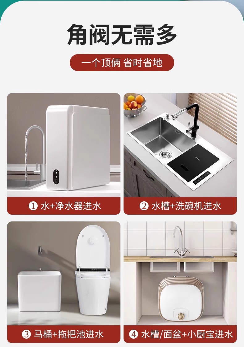 수도꼭지 보쉬 세탁기 애프터마켓 4포인트 6포인트 더블 아웃 앵글 밸브 구리 1입구 2출구 Siemens 식기세척기 전용