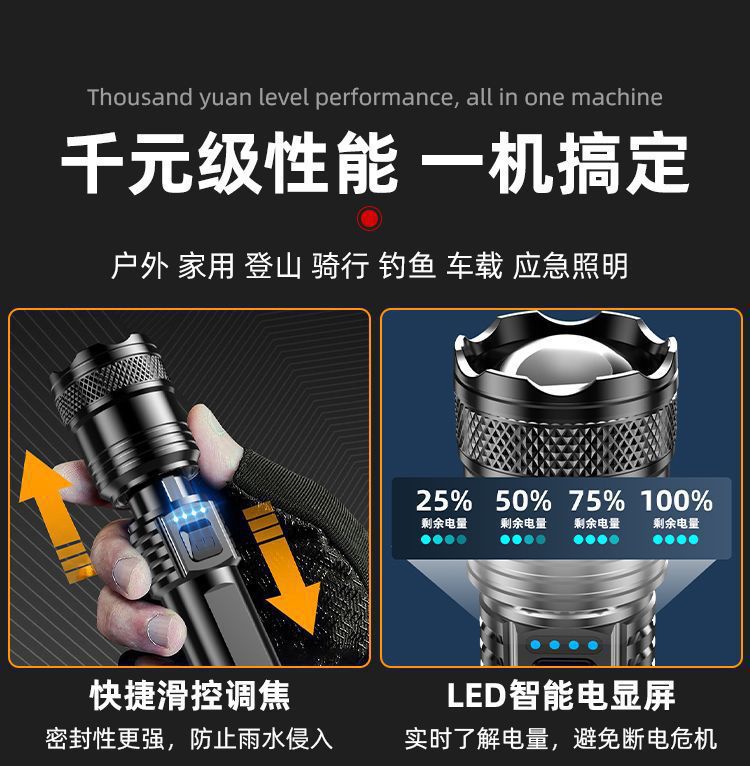 LED 손전등 강한 빛, 매우 밝은 장거리 야외 충전식 긴 수명 다기능 비상 작업 조명 휴대용 가정용스토어 가기