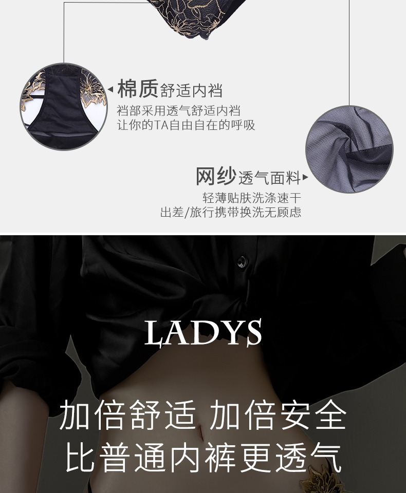 섹시한 여성 속옷, 여성용 레이스 자수, 순수한 욕망, 고급스러운 통기성 중공 레이스 중간 허리 팬티, 여성용 얇은스토어 가기