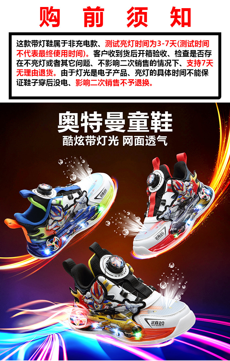 울트라 맨 회전 버클 소년의 가벼운 운동화 조명 어린이 운동화 여름 메쉬 통기성 아기 신발스토어 가기