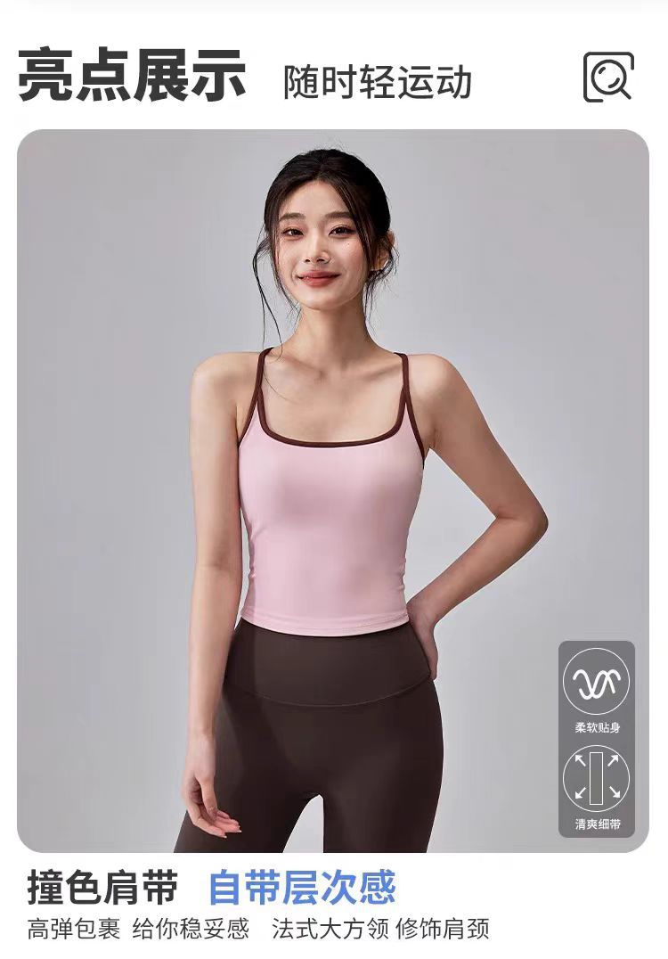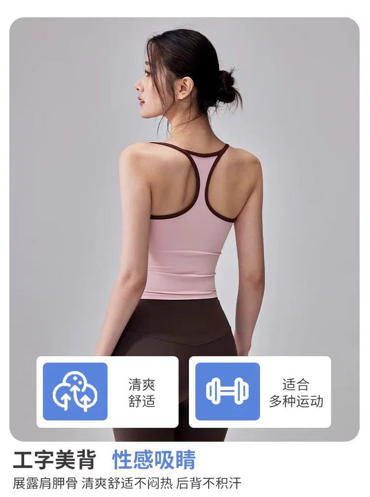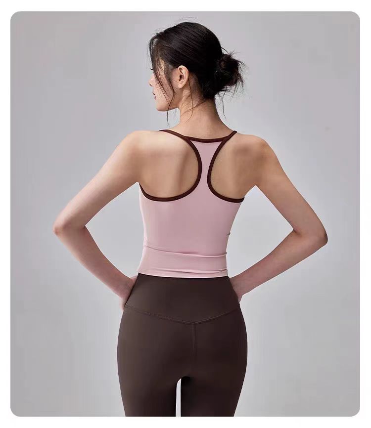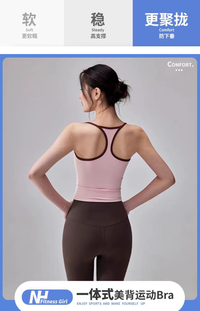 대비되는 색상, 웨어러블 스포츠 레이서 조끼, 피부 친화적인 누드 느낌의 고정 컵 요가 브라, 여성용 충격 방지 피트니스 의류 탑