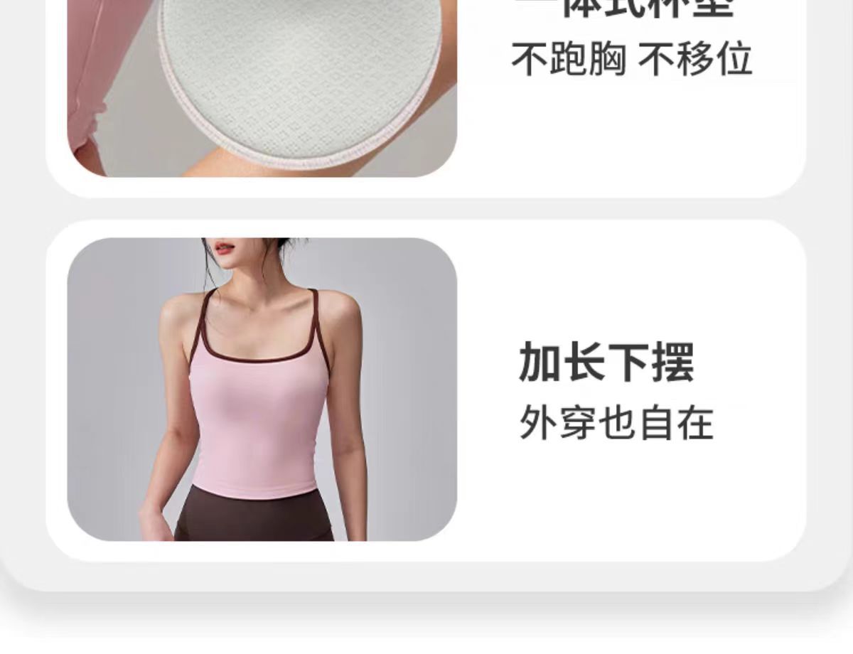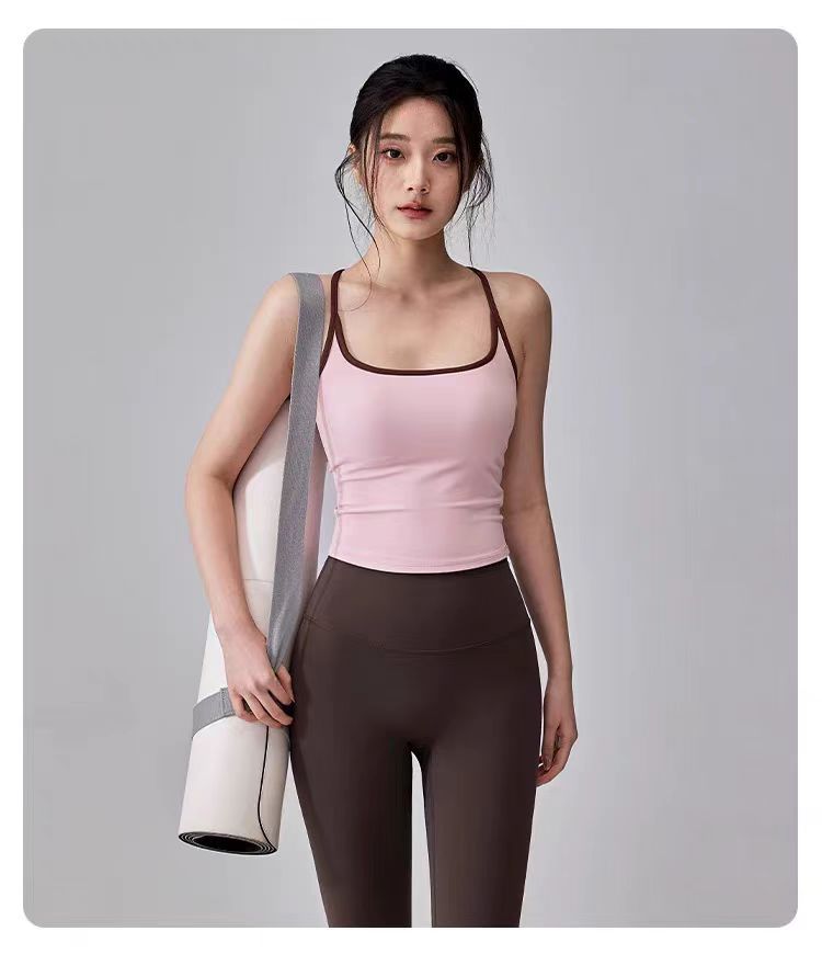 대비되는 색상, 웨어러블 스포츠 레이서 조끼, 피부 친화적인 누드 느낌의 고정 컵 요가 브라, 여성용 충격 방지 피트니스 의류 탑스토어 가기