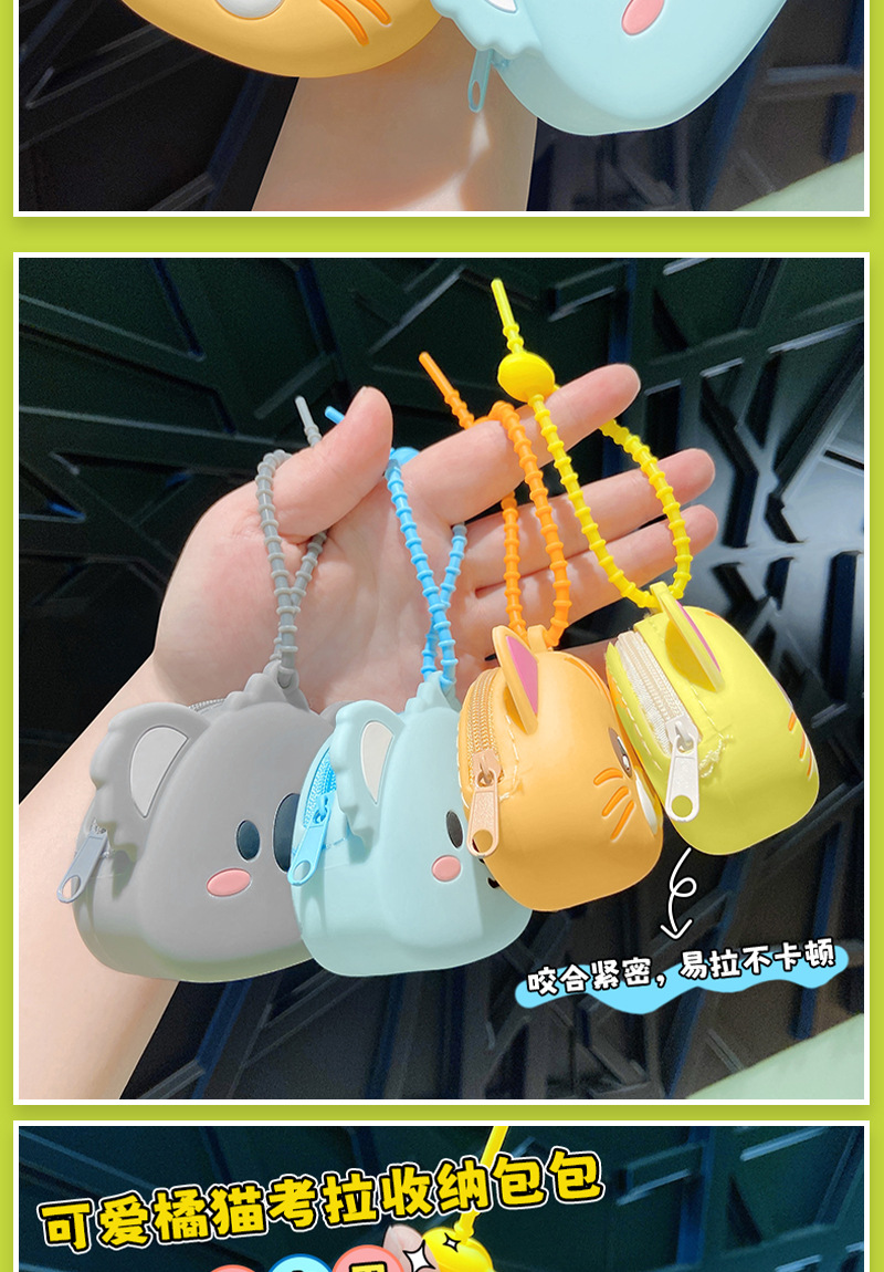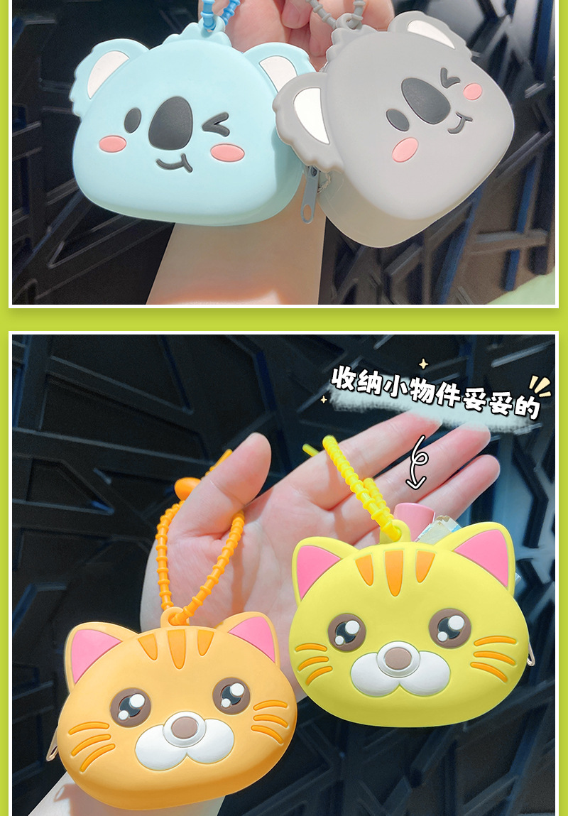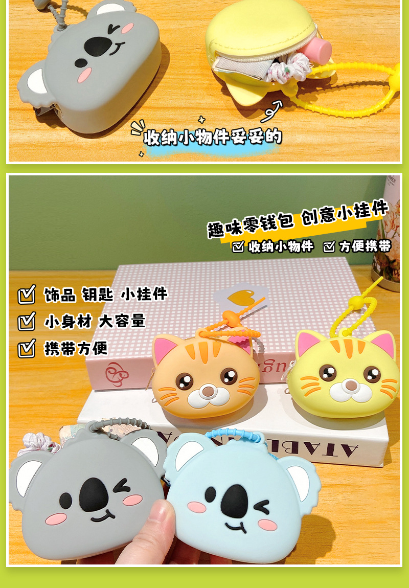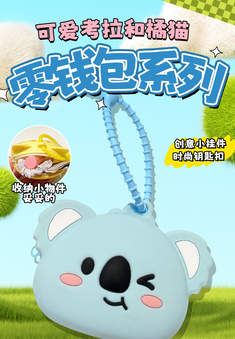 코알라와 오렌지 고양이 미니 만화 실리콘 동전 지갑 여성용 헤드폰 가방 귀여운 어린이 실리콘 가방 가방 펜던트스토어 가기