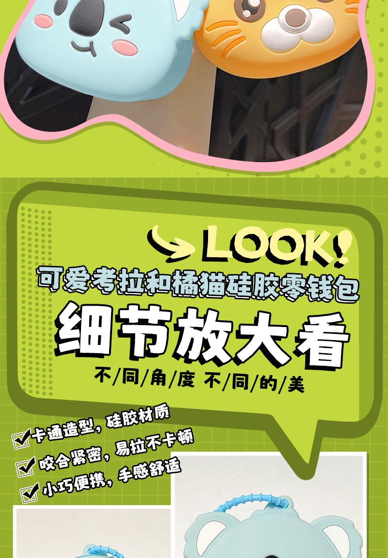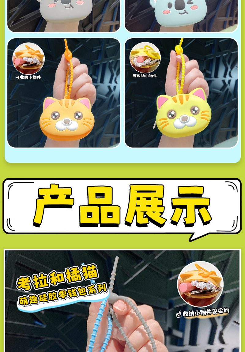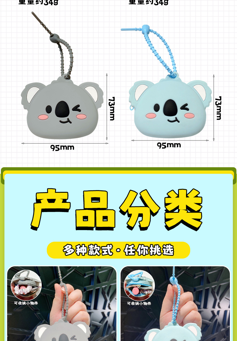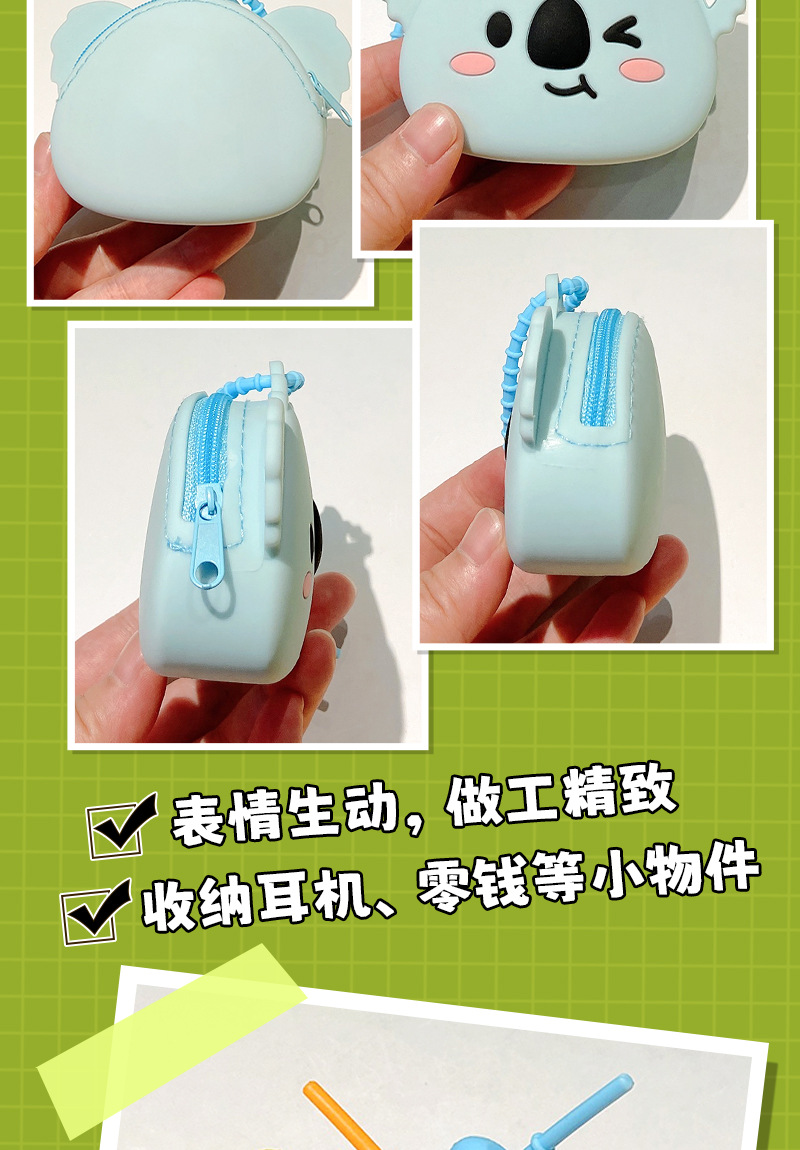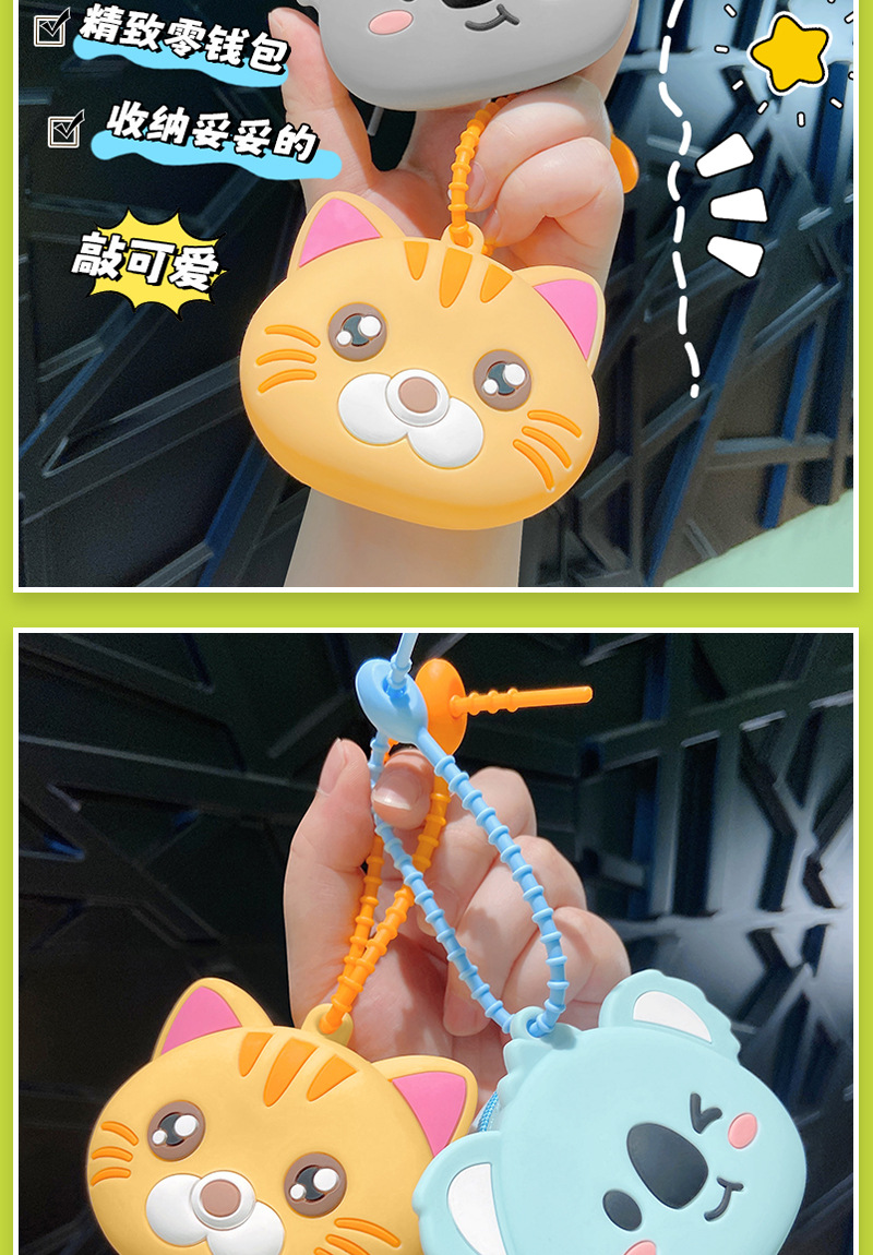 코알라와 오렌지 고양이 미니 만화 실리콘 동전 지갑 여성용 헤드폰 가방 귀여운 어린이 실리콘 가방 가방 펜던트스토어 가기